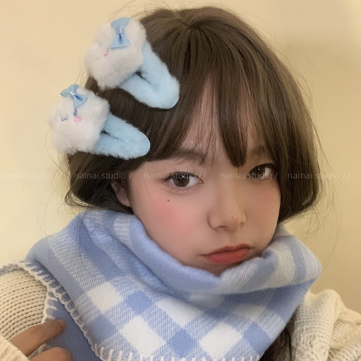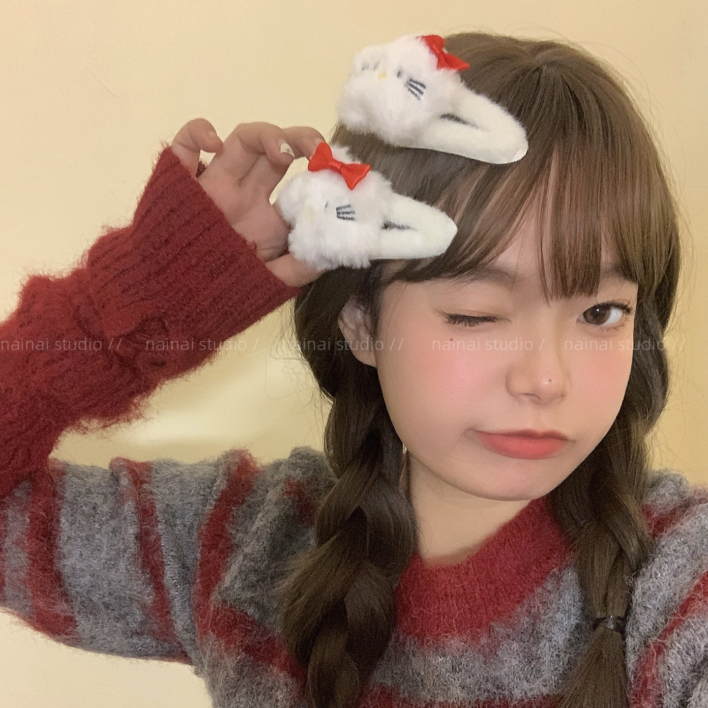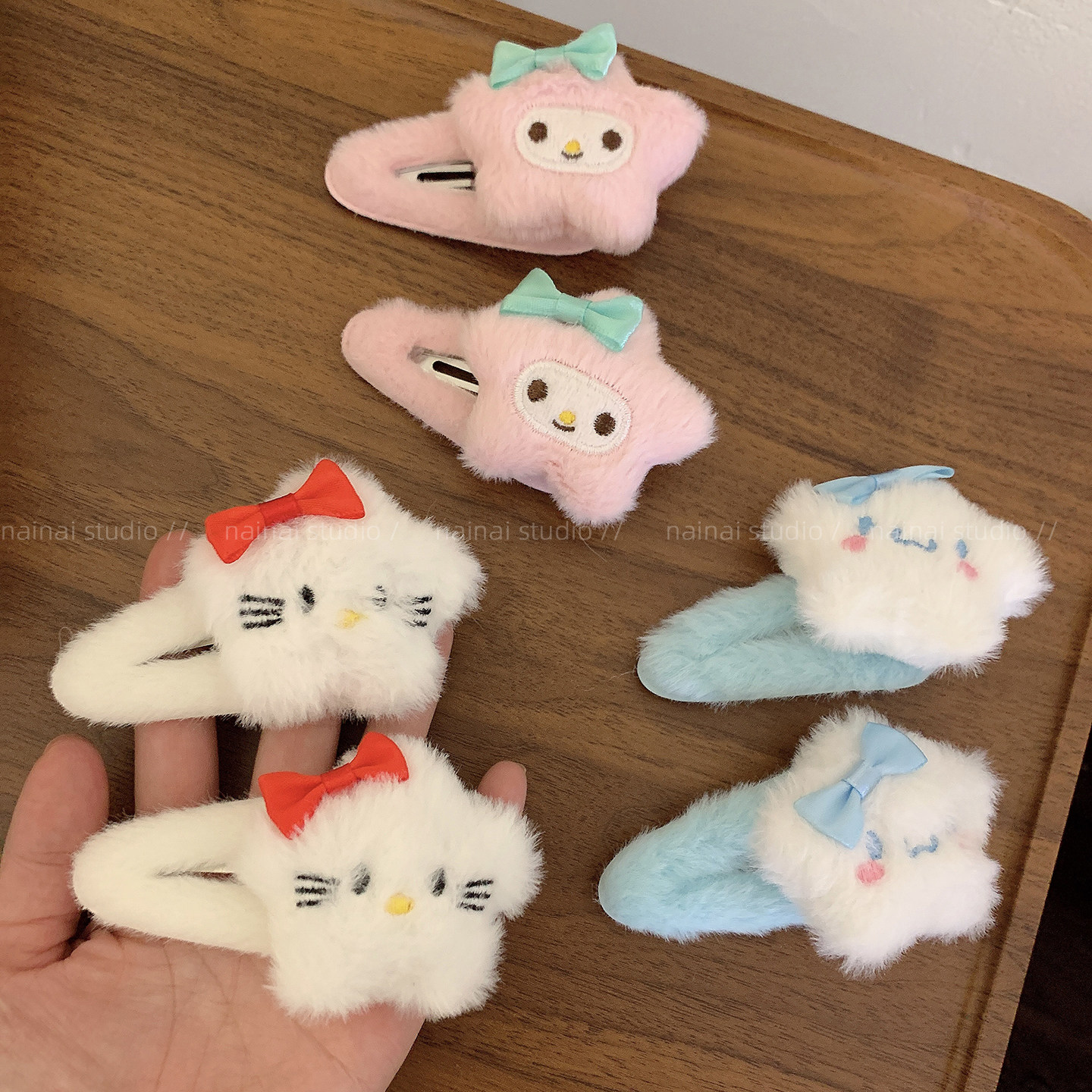 毛绒Kitty发夹2只装~可爱卡通少女心BB夹侧边夹KT猫咪刘海夹发饰