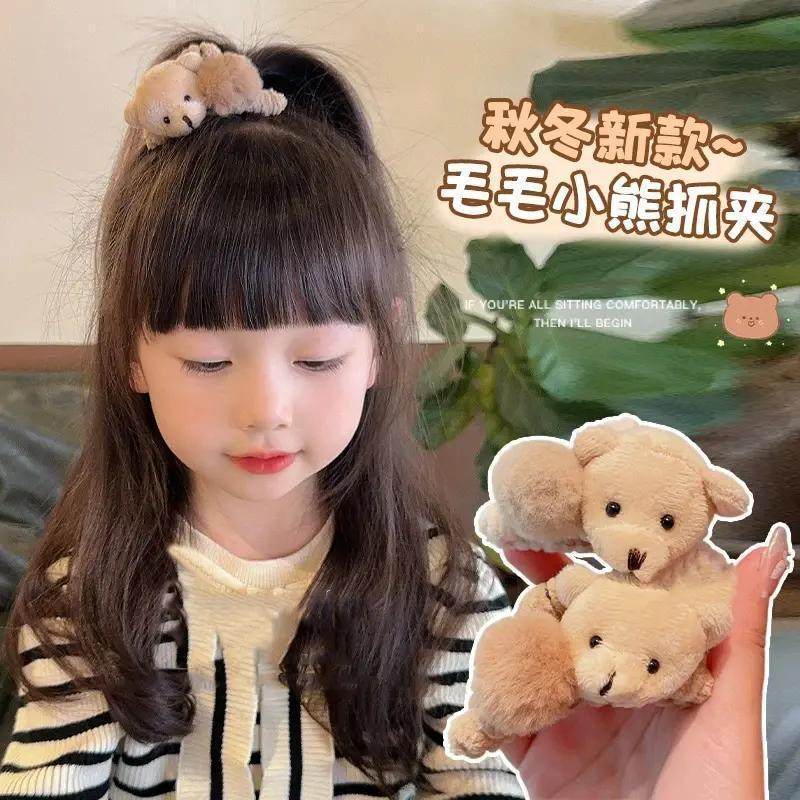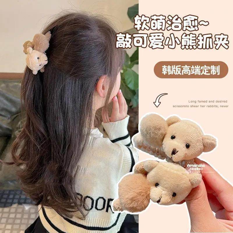 秋冬季可爱毛绒夹发夹女盘发抓夹刘海夹发卡发饰2025新款小熊头饰