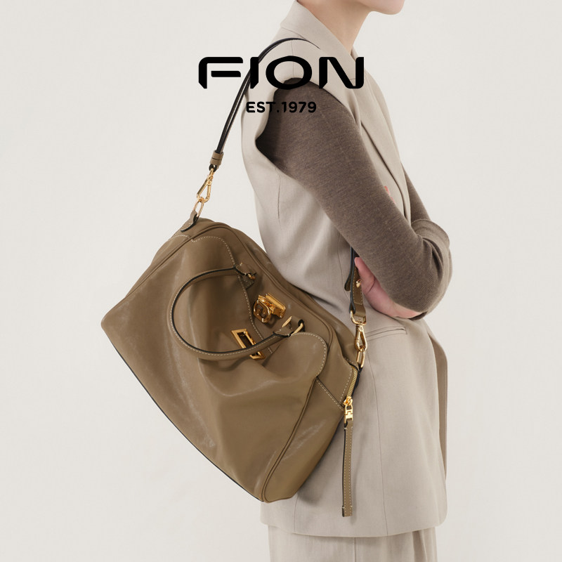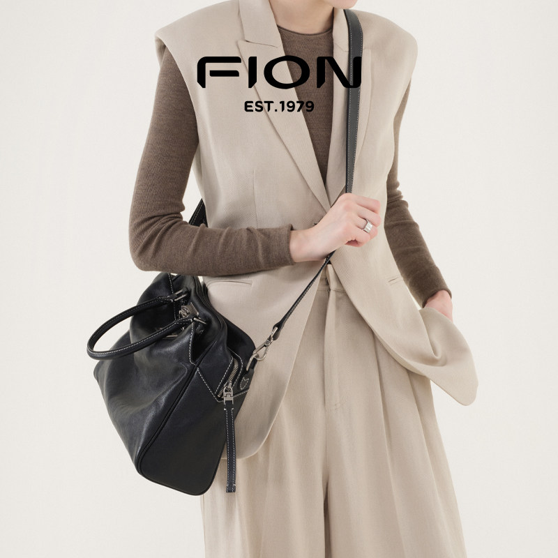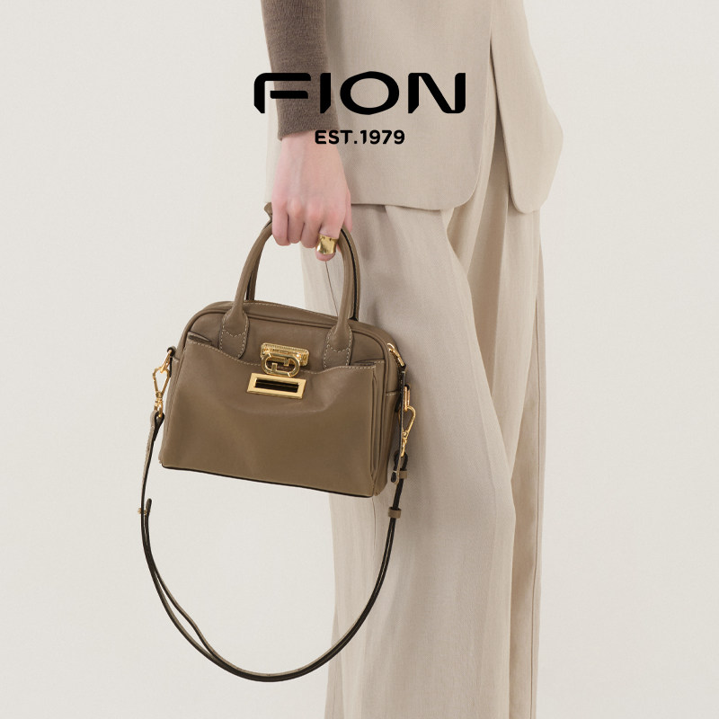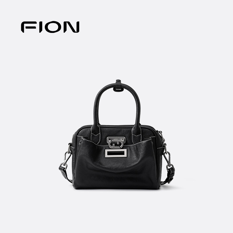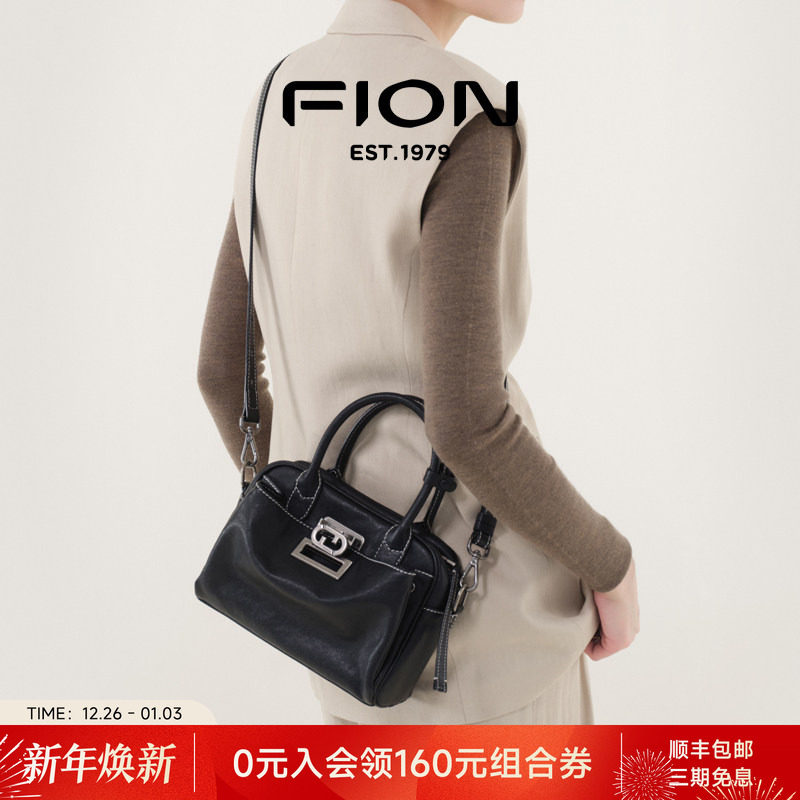 Fion/菲安妮真皮波士顿包2025新款高级感通勤手提包女单肩斜挎包