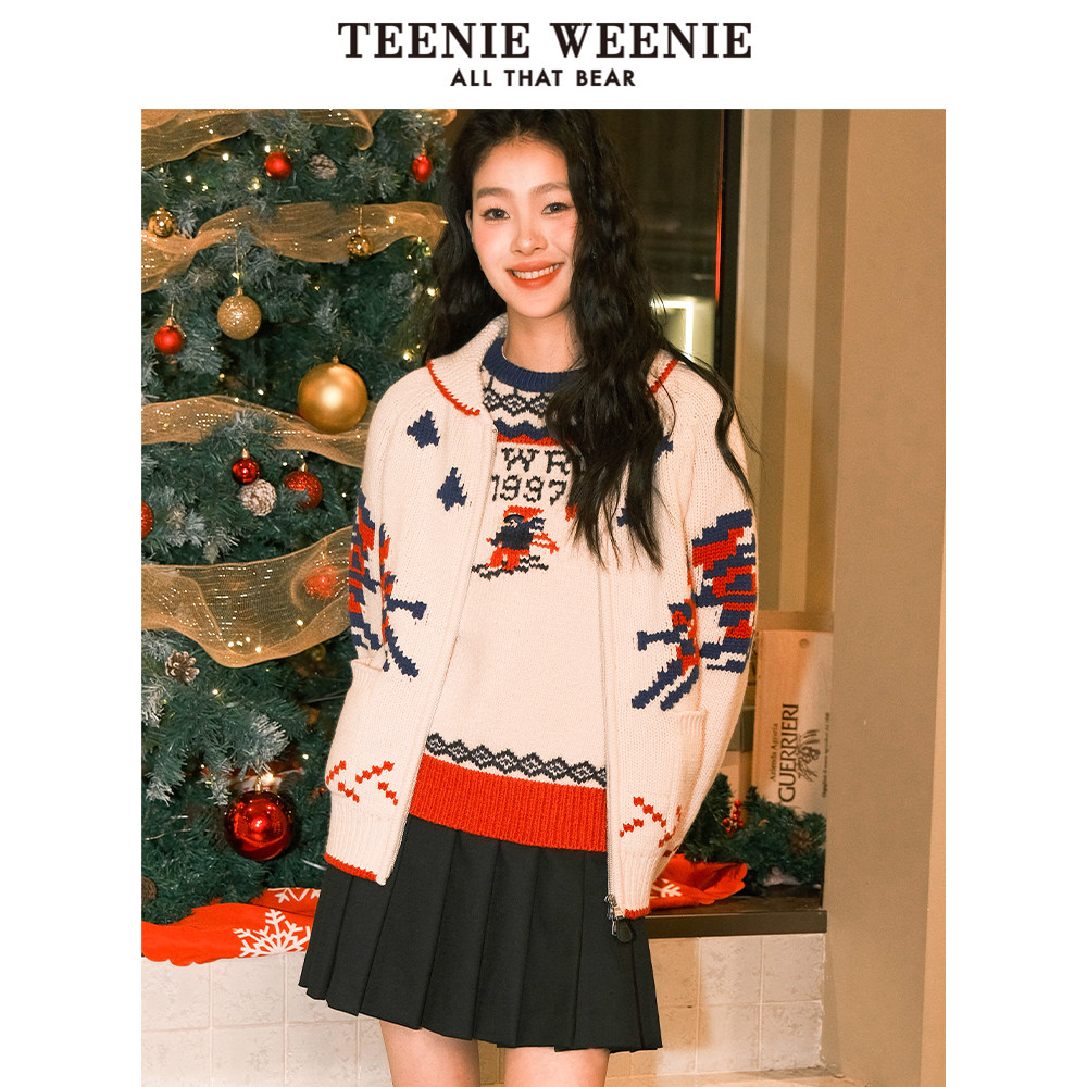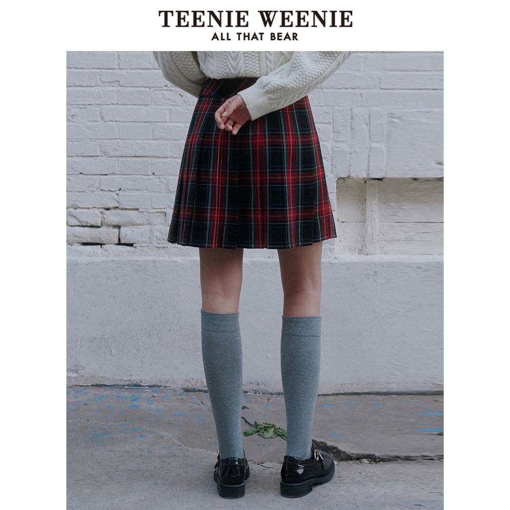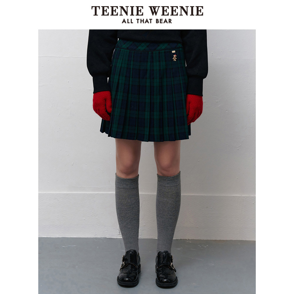 TeenieWeenie小熊奥莱春季高腰学院风格纹百褶裙A字短裙时尚气质