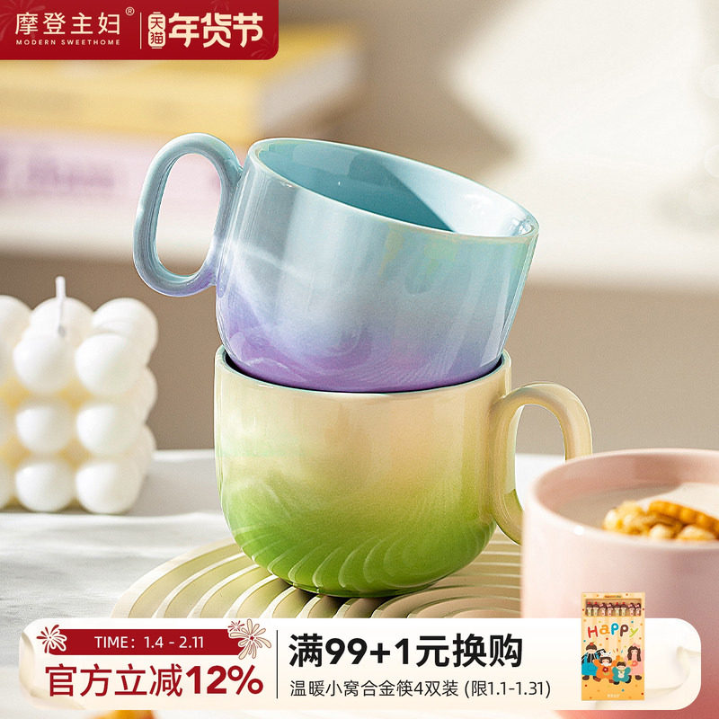 摩登主妇马克杯渐变创意陶瓷喝水杯女家用大容量杯子早餐杯咖啡杯