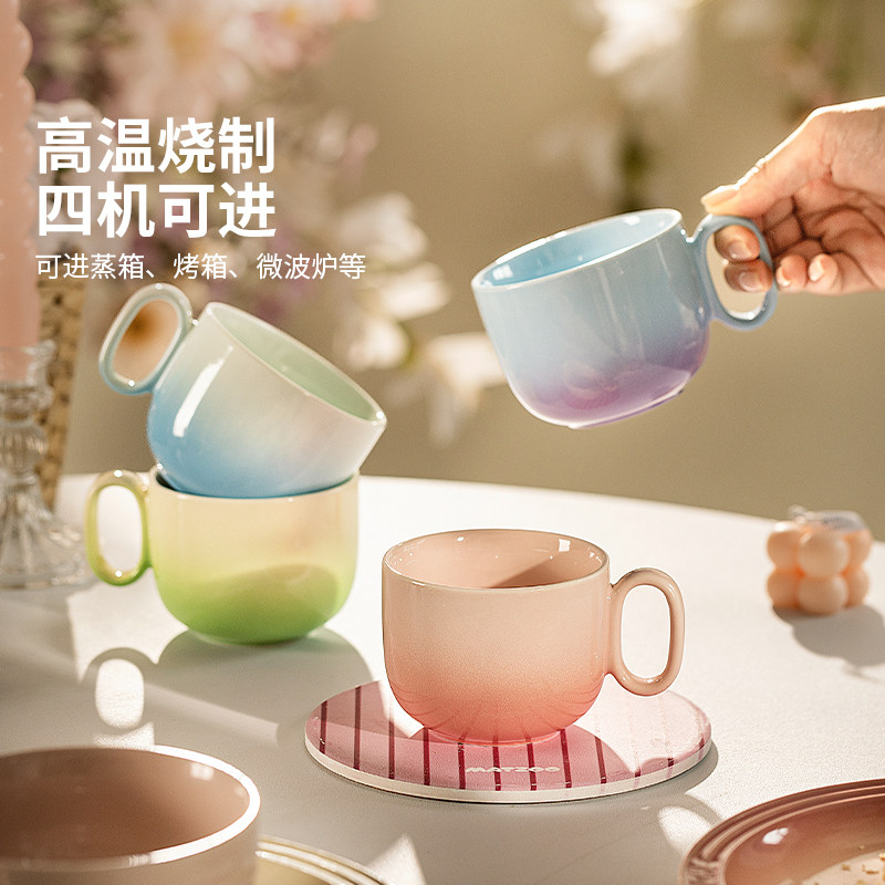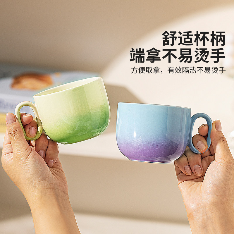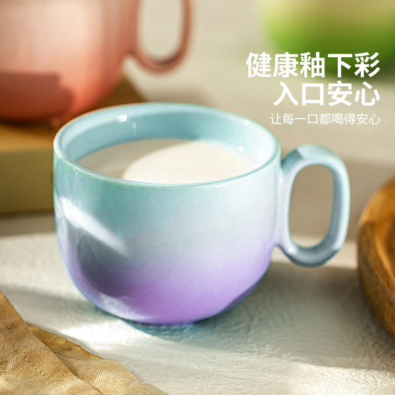 渐变马克杯高颜值家用女生喝水杯办公室陶瓷情侣水杯子早餐咖啡杯