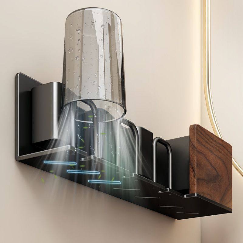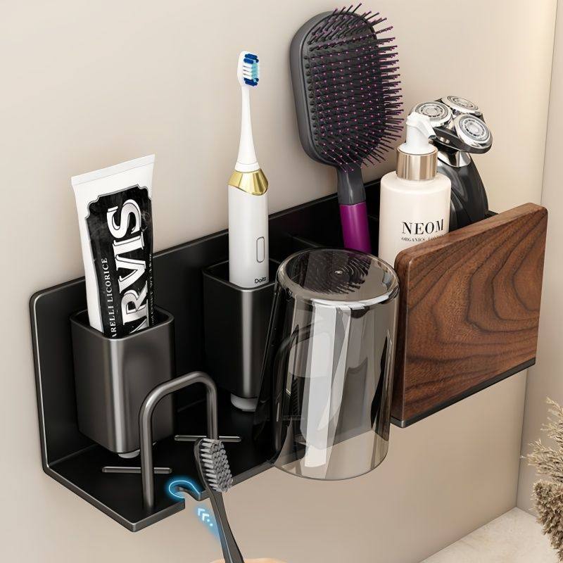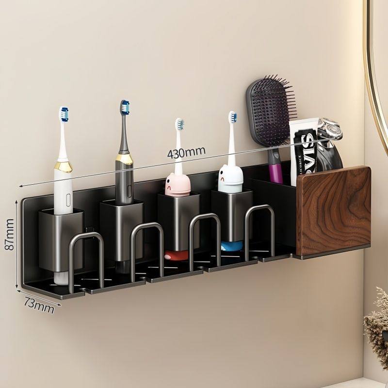 胡桃木卫生间电动牙刷置物架壁挂式免打孔牙膏牙杯漱口杯挂架刷牙