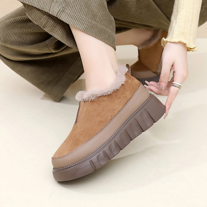 低帮厚底雪地靴女2025新款冬季懒人一脚蹬毛毛棉鞋加绒加厚女鞋子