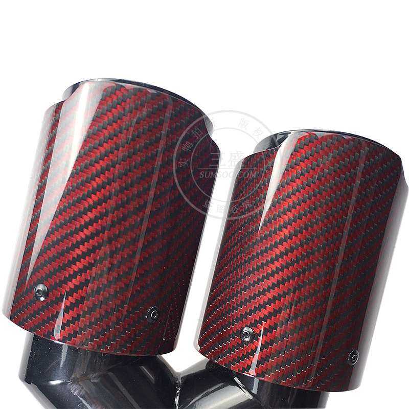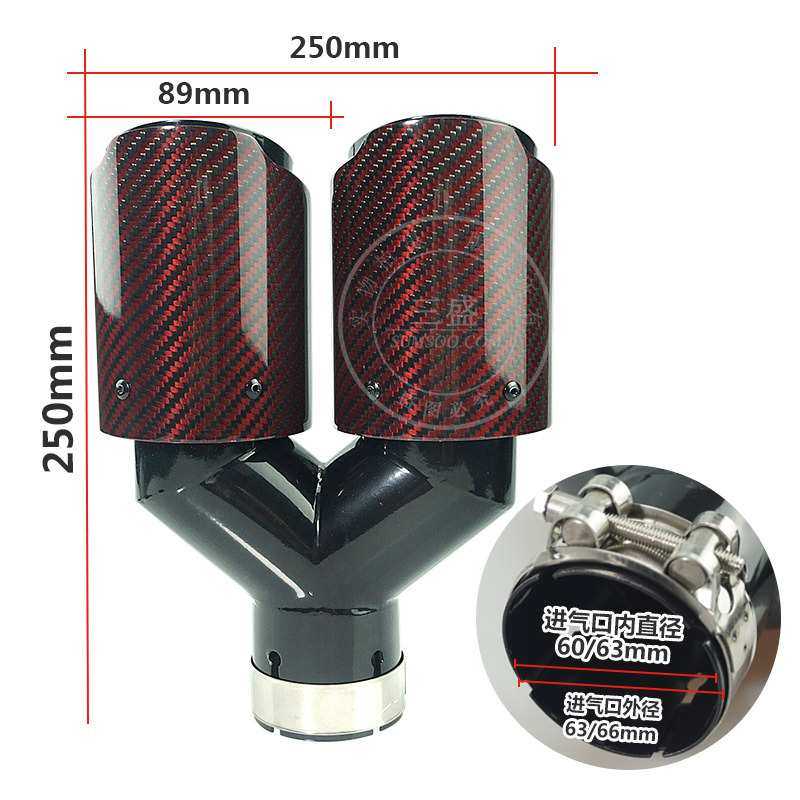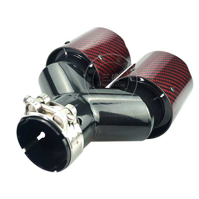 厂家直供红黑款一出二Y型碳纤维尾嘴汽车改装排气管双出 四出尾喉