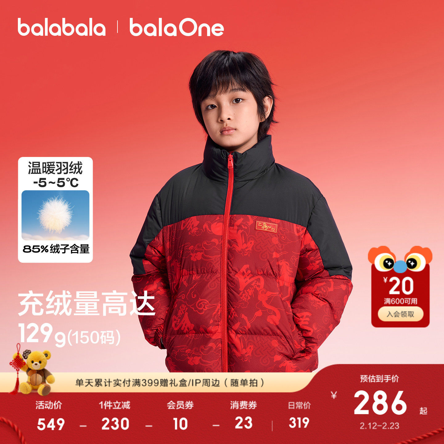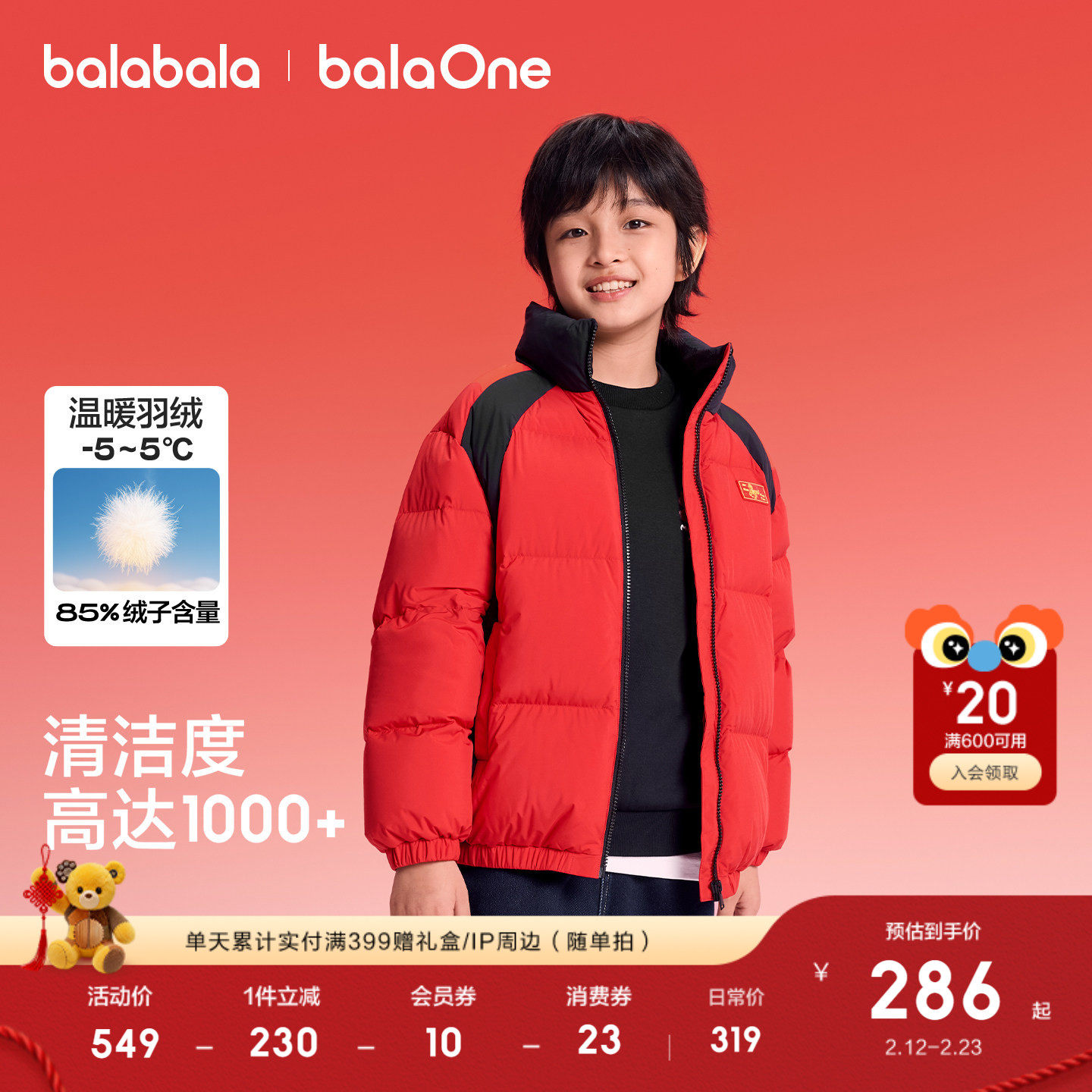 巴拉巴拉童装儿童羽绒服男女童2026新款冬装防护红色外套拜年服