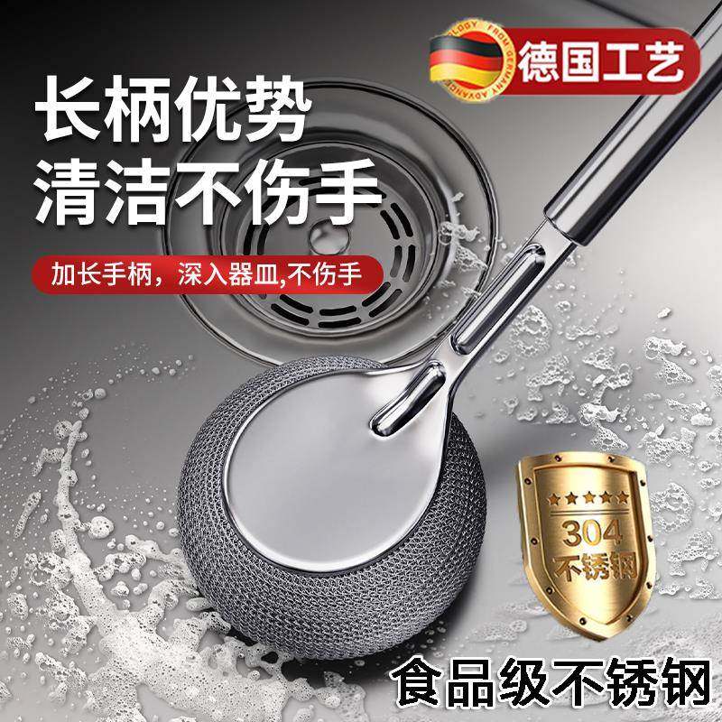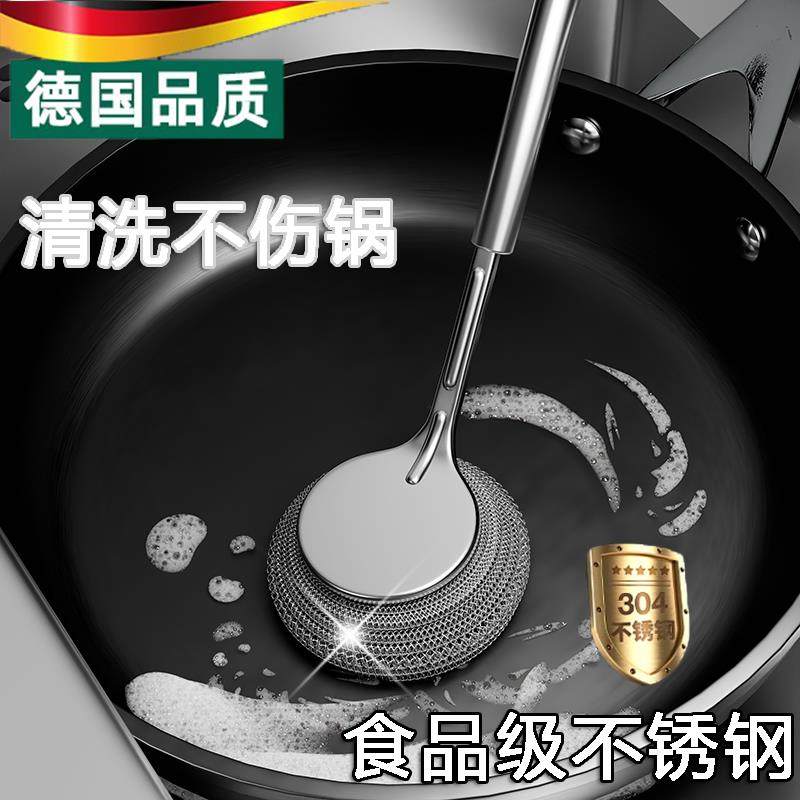 不锈钢刷锅神器长柄洗锅刷子厨房专用不伤锅钢丝球带柄洗碗清洁刷