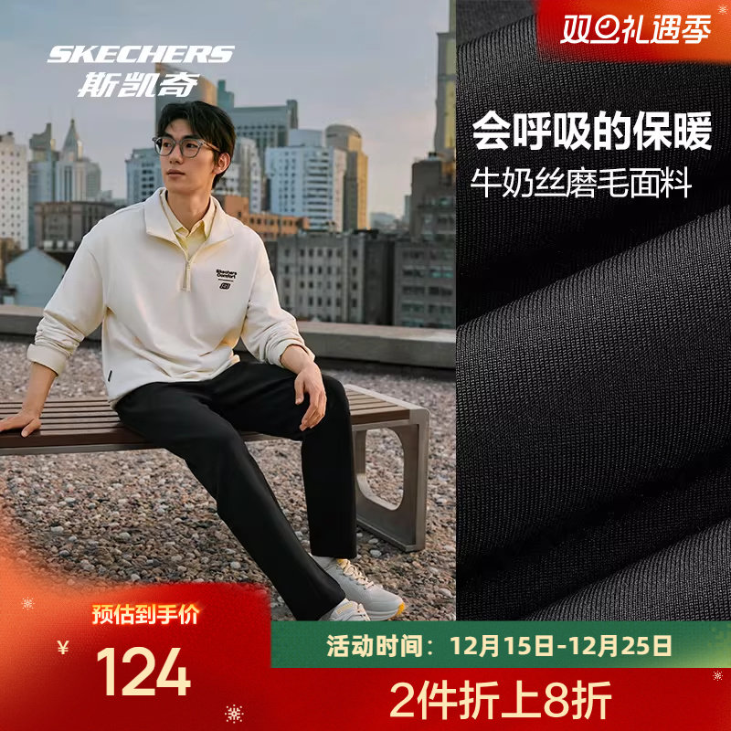 斯凯奇针织空气层长裤2025冬季男款直筒加绒裤保暖舒适休闲运动