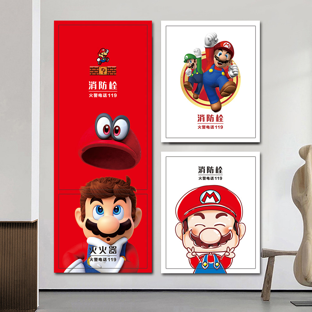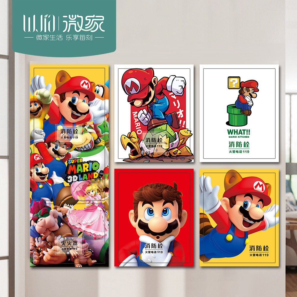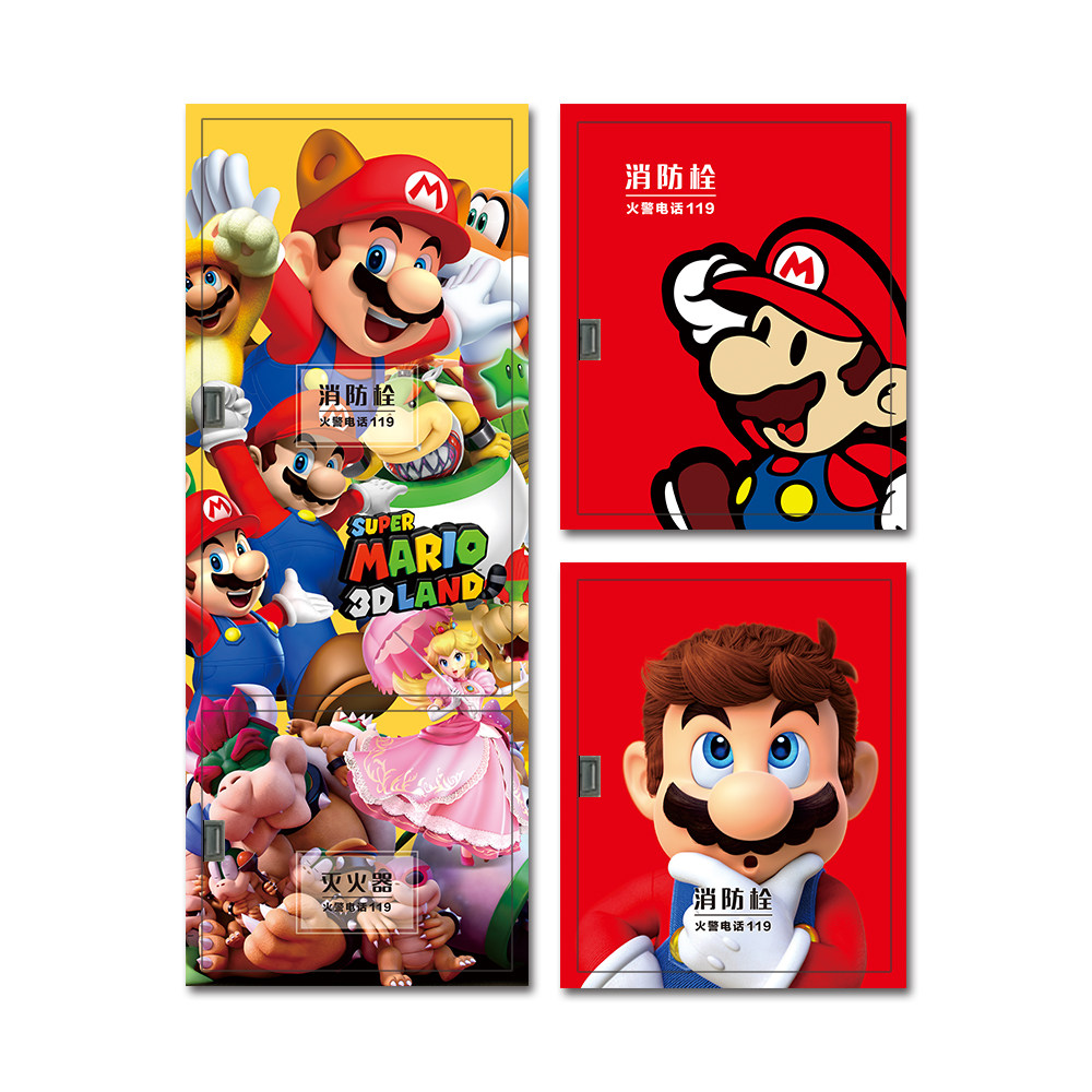 马里奥消防栓柜门灭火器创意贴纸水井门标识遮挡美化装饰定制墙贴