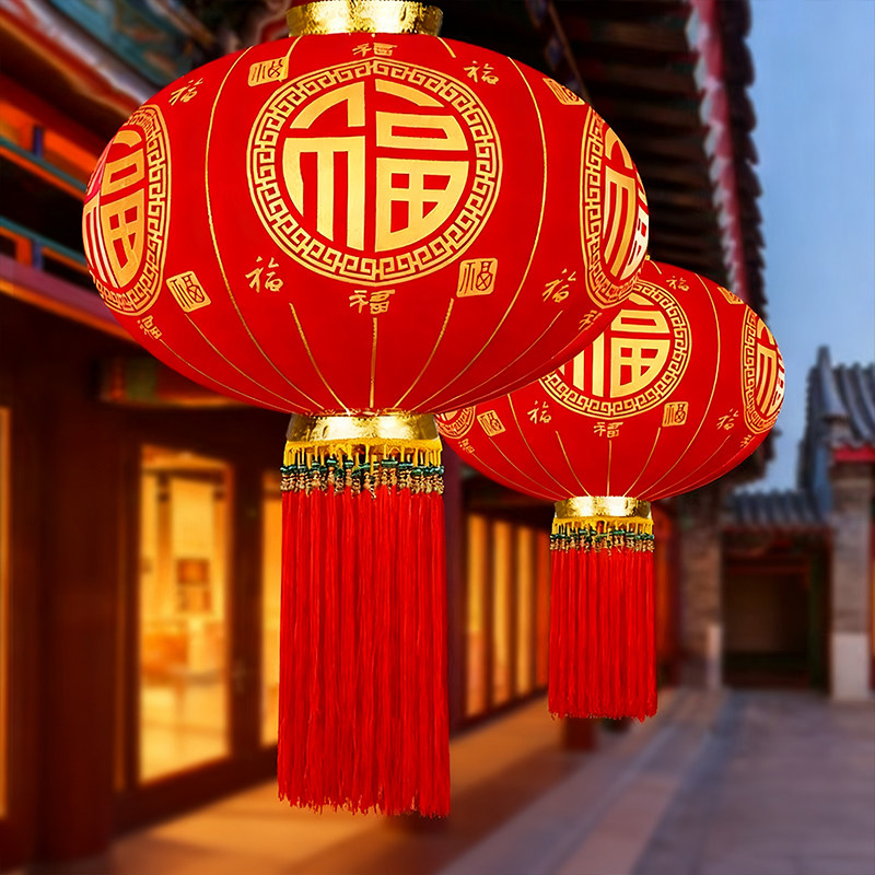 新年大红灯笼植绒春节过年2026门口阳台一对福字灯笼挂饰户外装饰