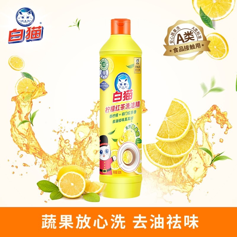 白猫柠檬红茶洗洁精大桶按压洗碗液可洗果蔬A类洗洁剂去油易过水