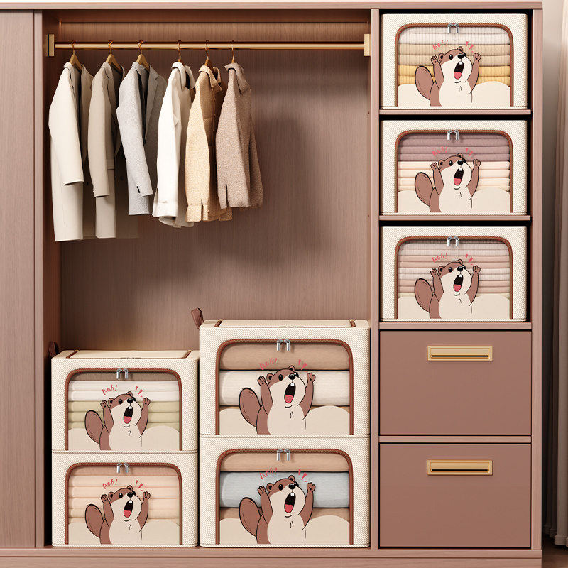 衣柜衣服收纳箱家用衣物裤子阳离折叠整理盒抽屉式布艺钢架储物筐