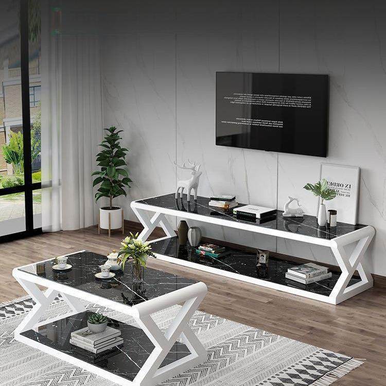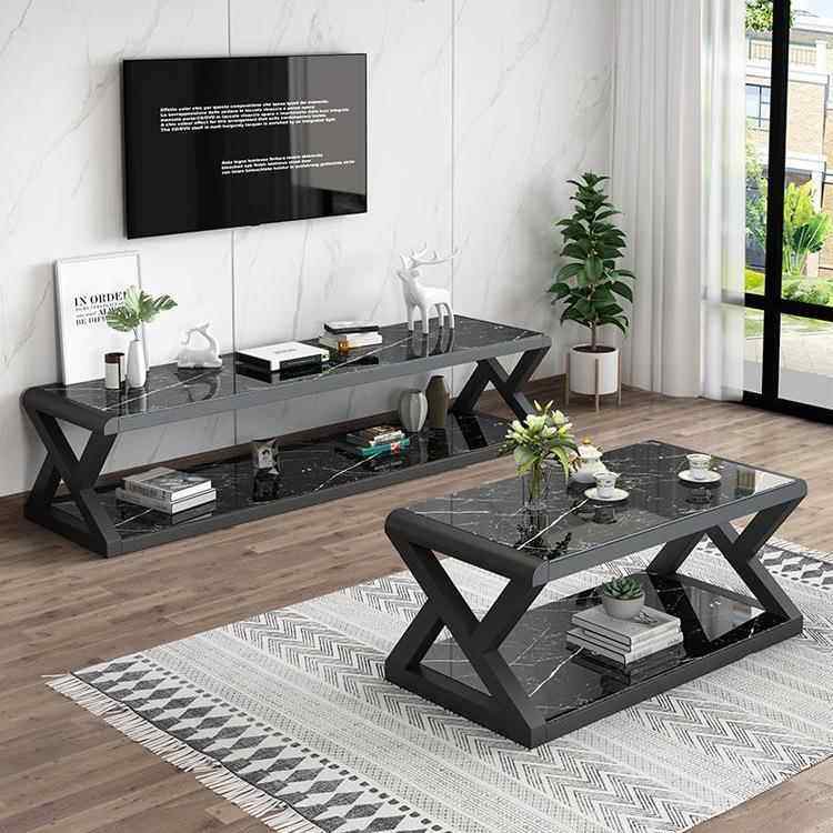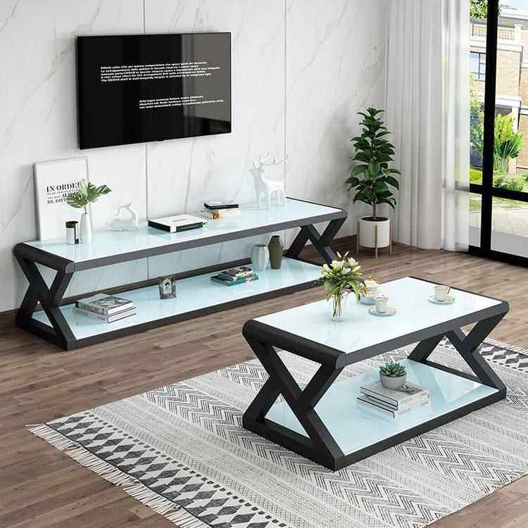 客厅电视柜钢化玻璃客厅柜简约现代茶几电视柜组合铁艺茶几