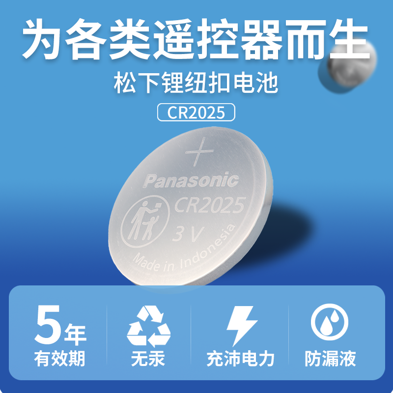 松下纽扣电池5粒CR2032/CR2025/CR2016电子3V适用摩托汽车钥匙遥控器CR1620/CR1220/CR1616/CR1632/CR2450
