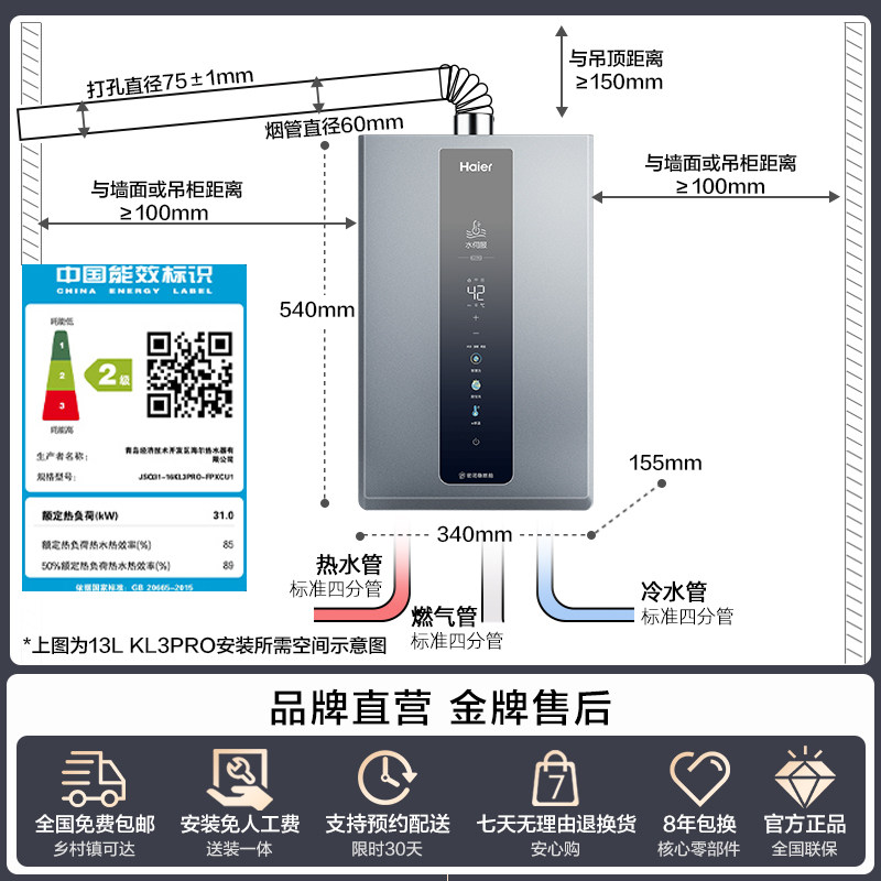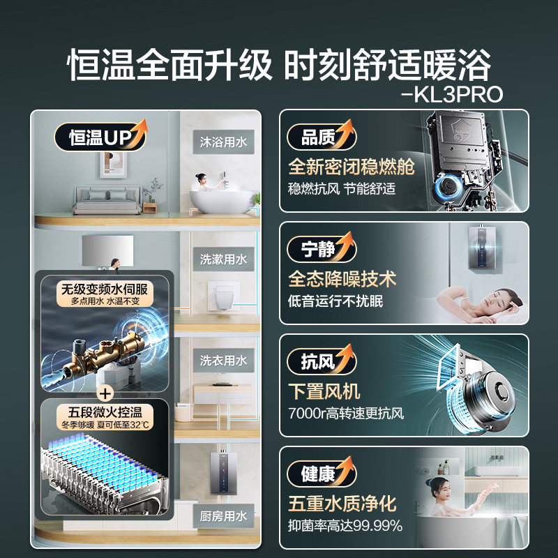 新品海尔燃气款热水器天然气家用水伺服恒温洗澡密闭稳燃舱KL3PRO