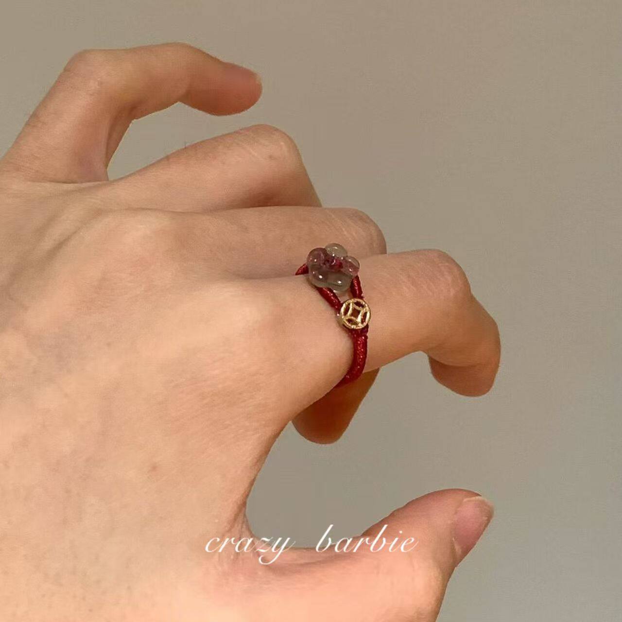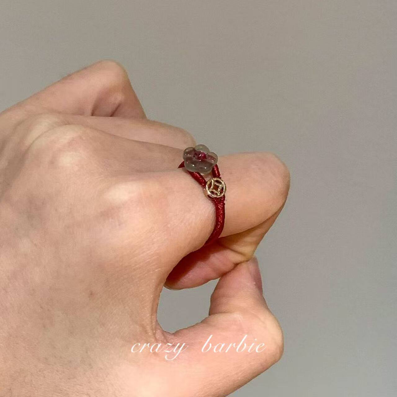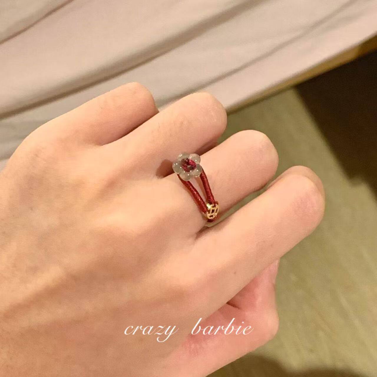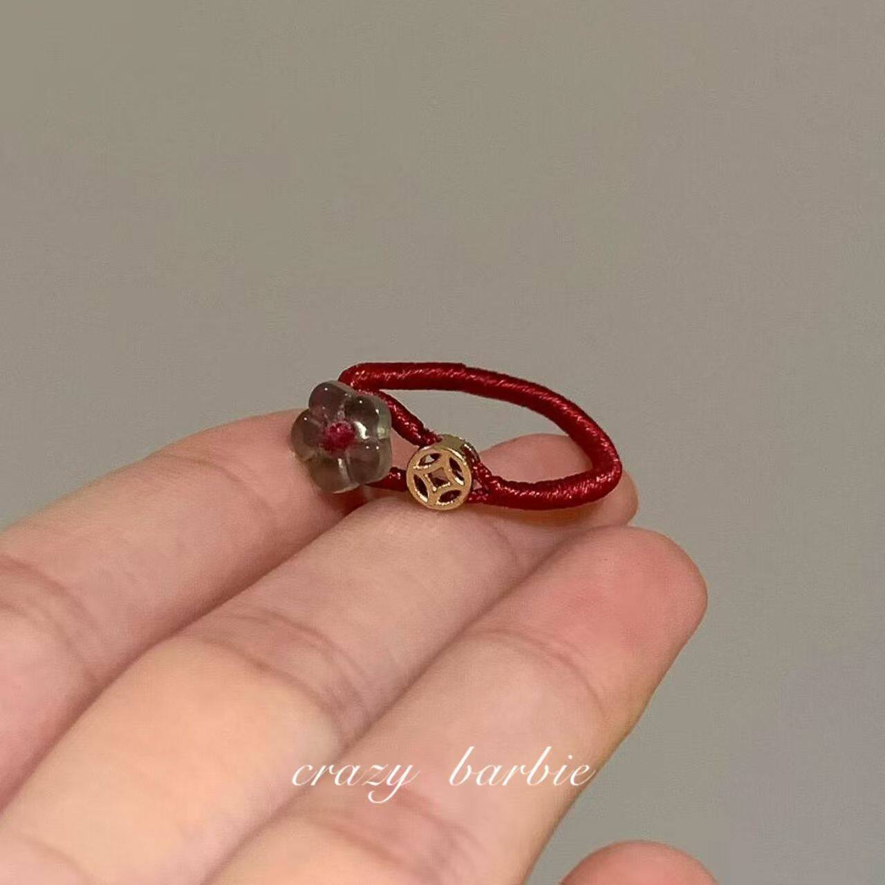 有钱花!红色编绳小花戒指小众轻奢设计感百搭新年精致本命年指环