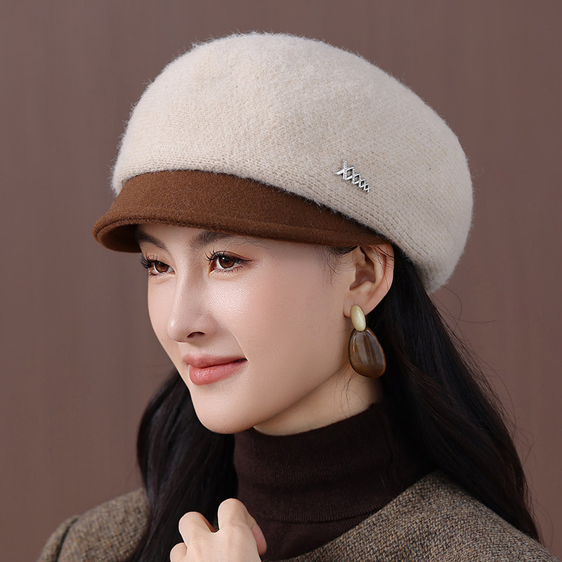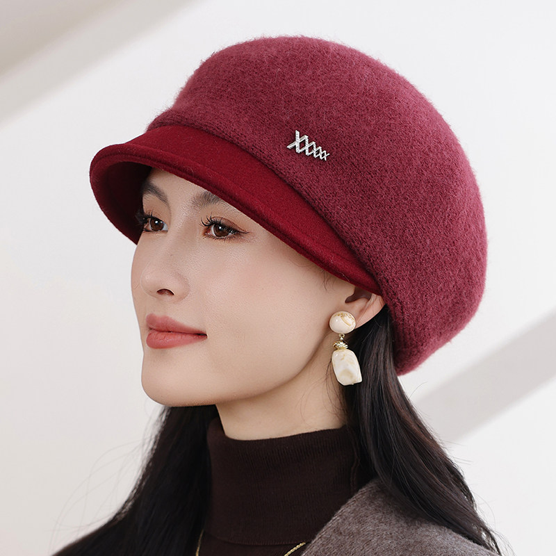 帽子女秋冬季针织保暖鸭舌帽加厚加棉贝雷帽女士妈妈帽韩版百搭款