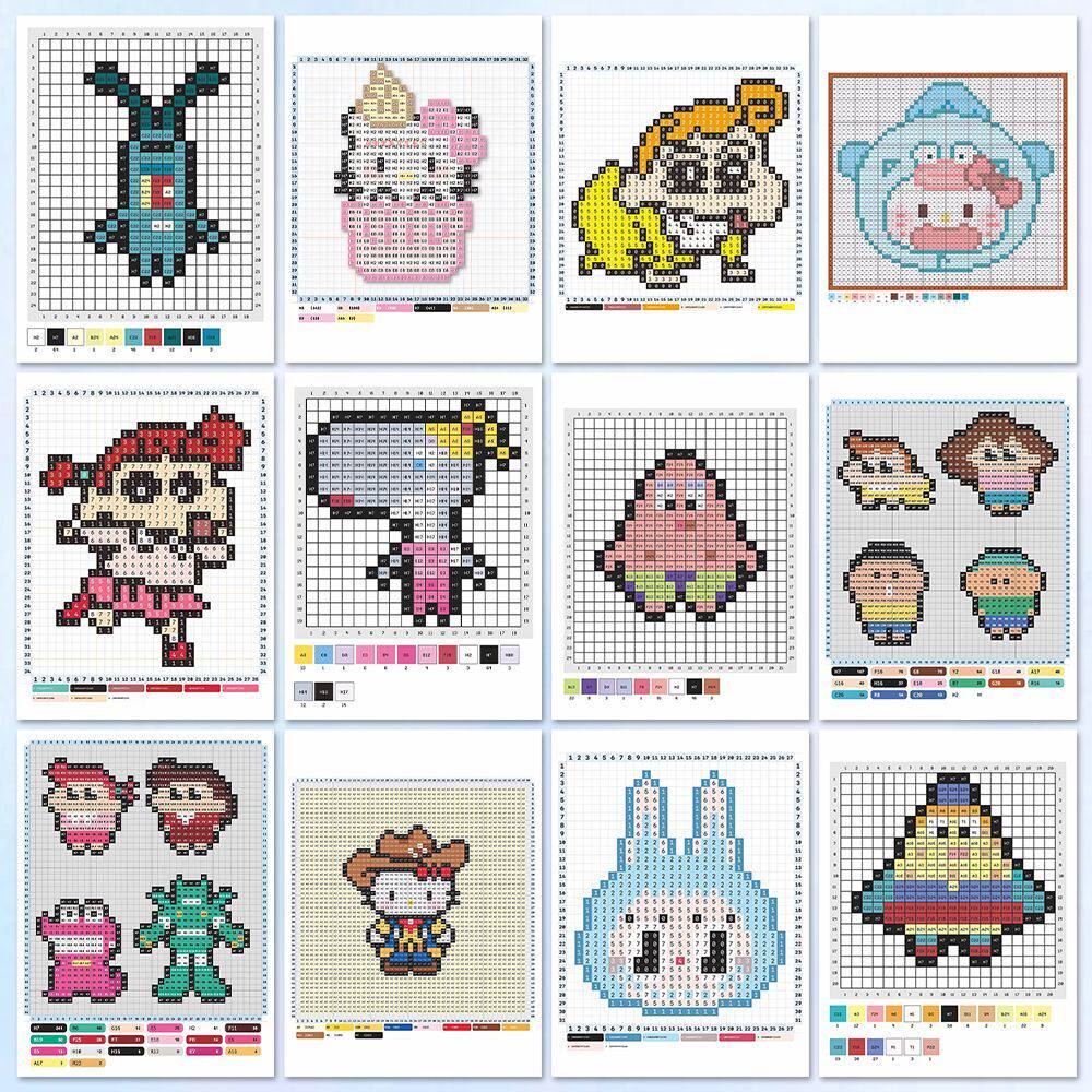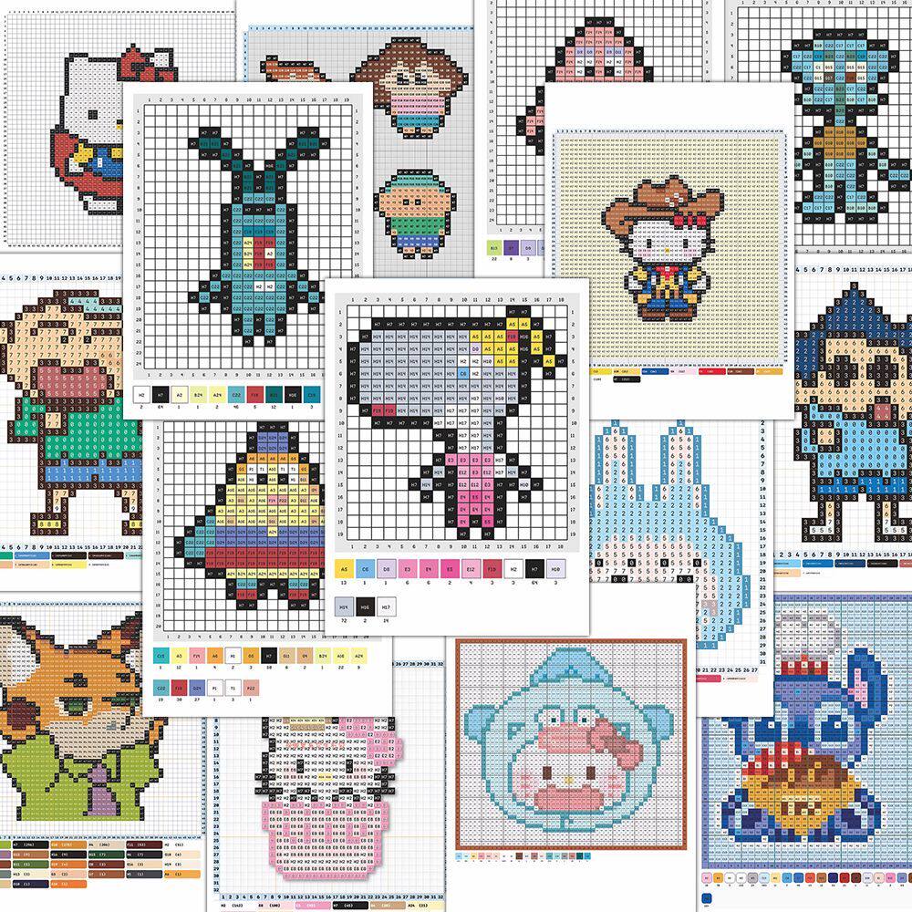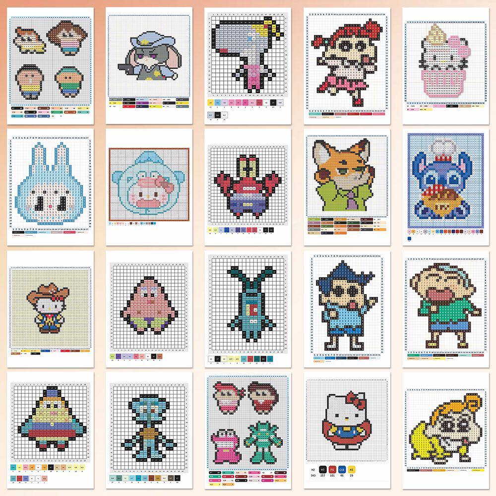 144张拼图拼豆图纸贴纸二次元动漫像素风拼豆教程素材自粘贴画diy