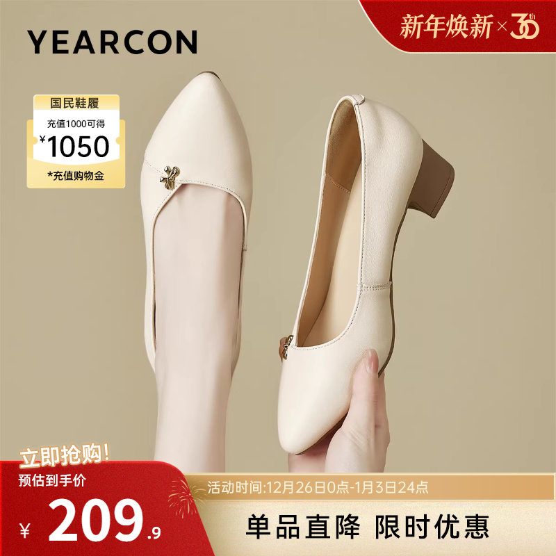 意尔康女鞋2025秋季大码粗跟单鞋尖头真皮通勤工作皮鞋法式配裙子