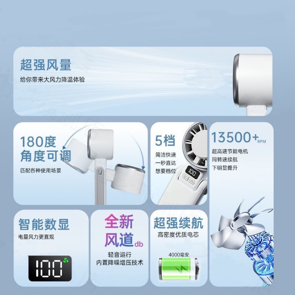2026新款手持小风扇可爱便携式随身小型静音迷你学生usb可充电超长续航大风力宿舍办公室桌面儿童制冷电风扇