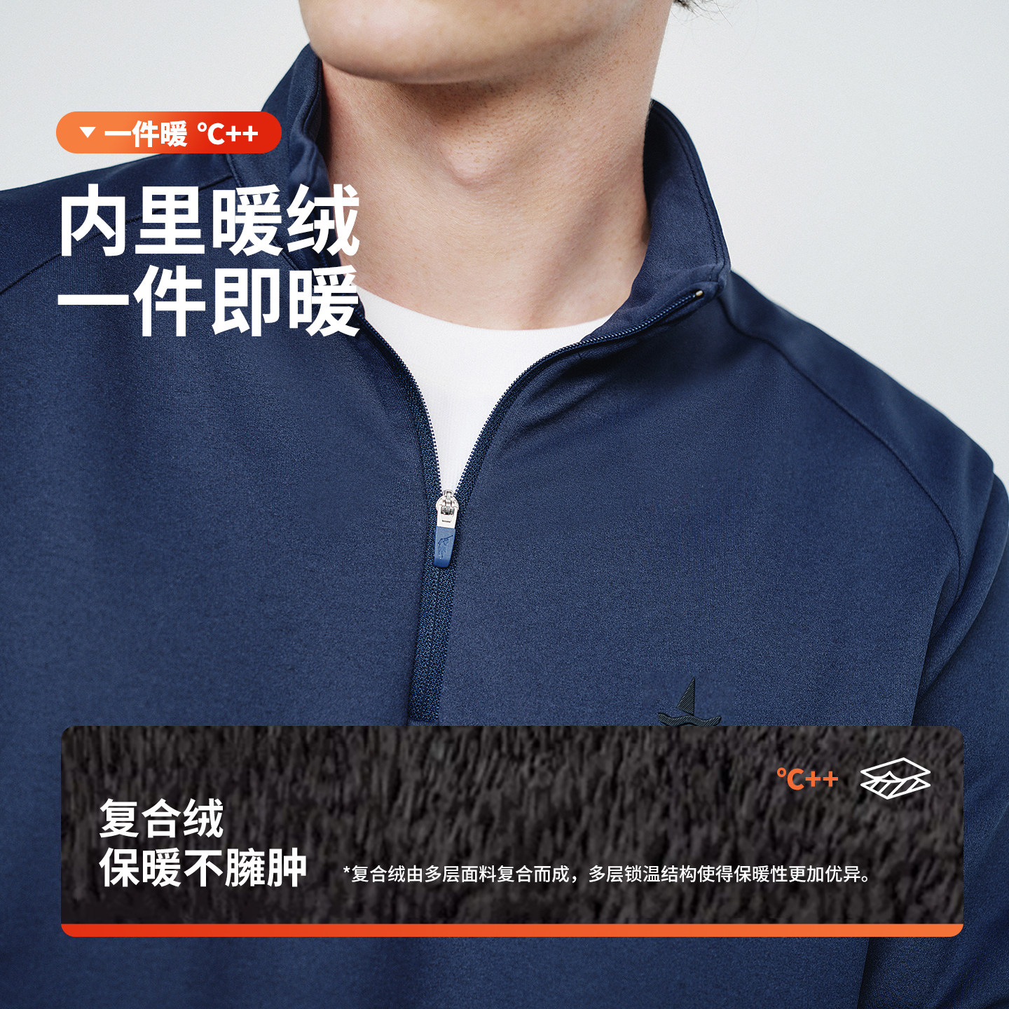 吕小虎ACTUP 秋冬季加绒立领卫衣男款青少年半拉链上衣加厚外套潮
