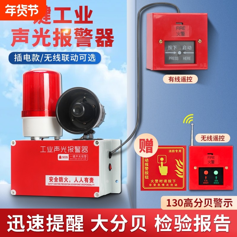 一键式报警器装置联动火灾逃生警铃手动应急消防声光警报器无线