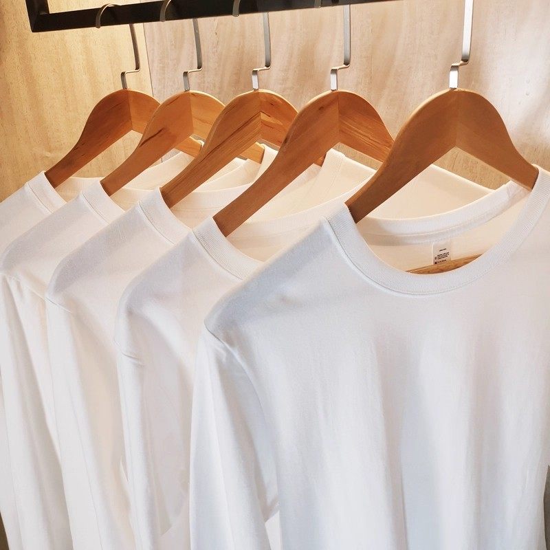 马登工装新疆纯棉长袖T恤纯色内搭打底白色重磅高克重体恤男秋季