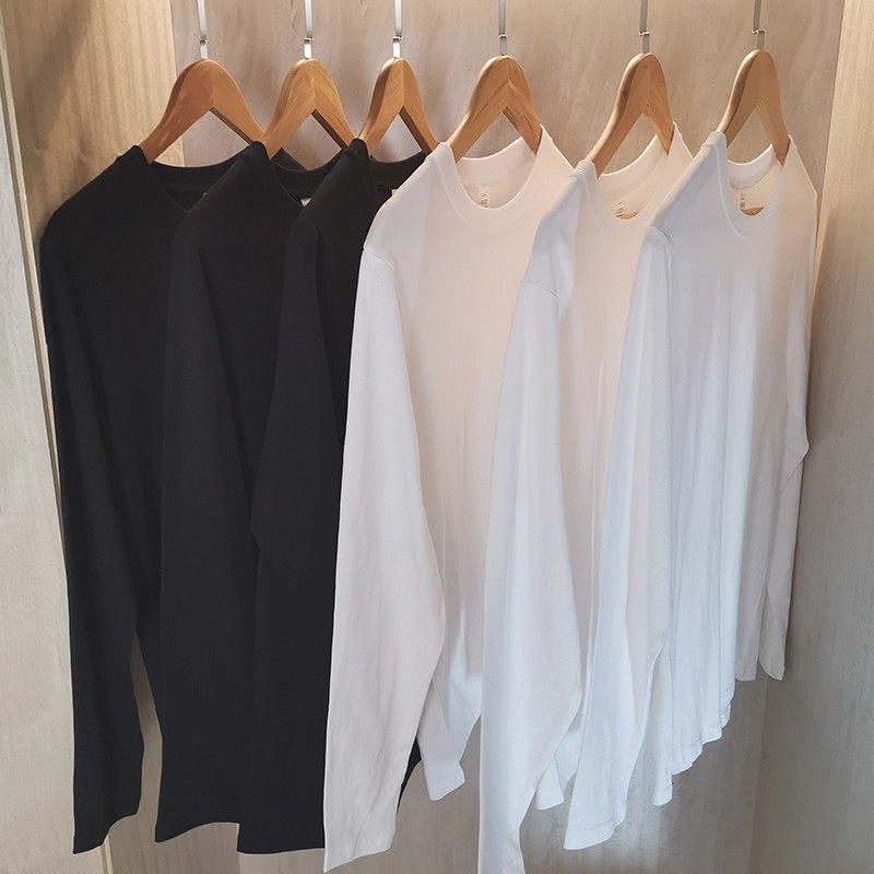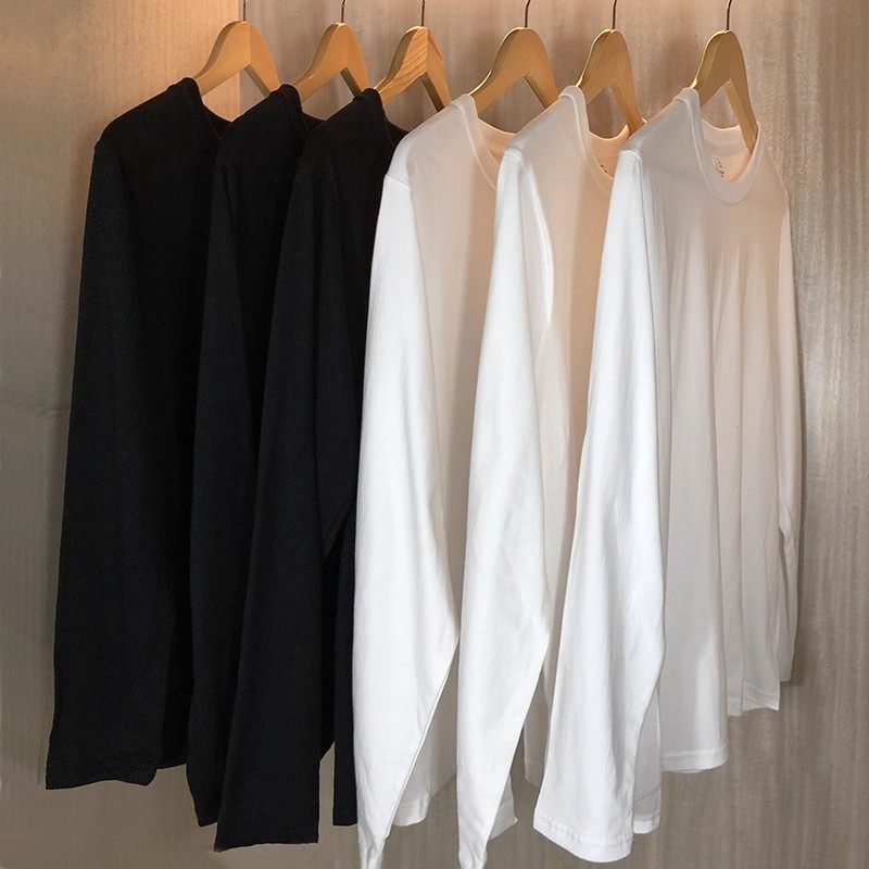 INS纯棉25韩国ins复古基础款纯色秋季打底衫内搭男女长袖T恤bf风