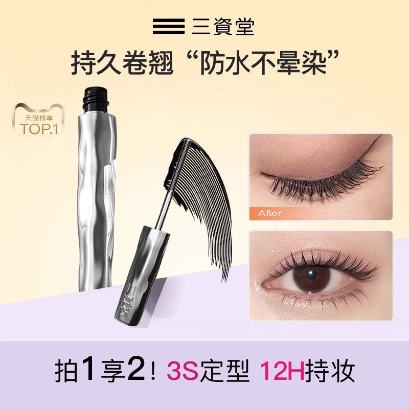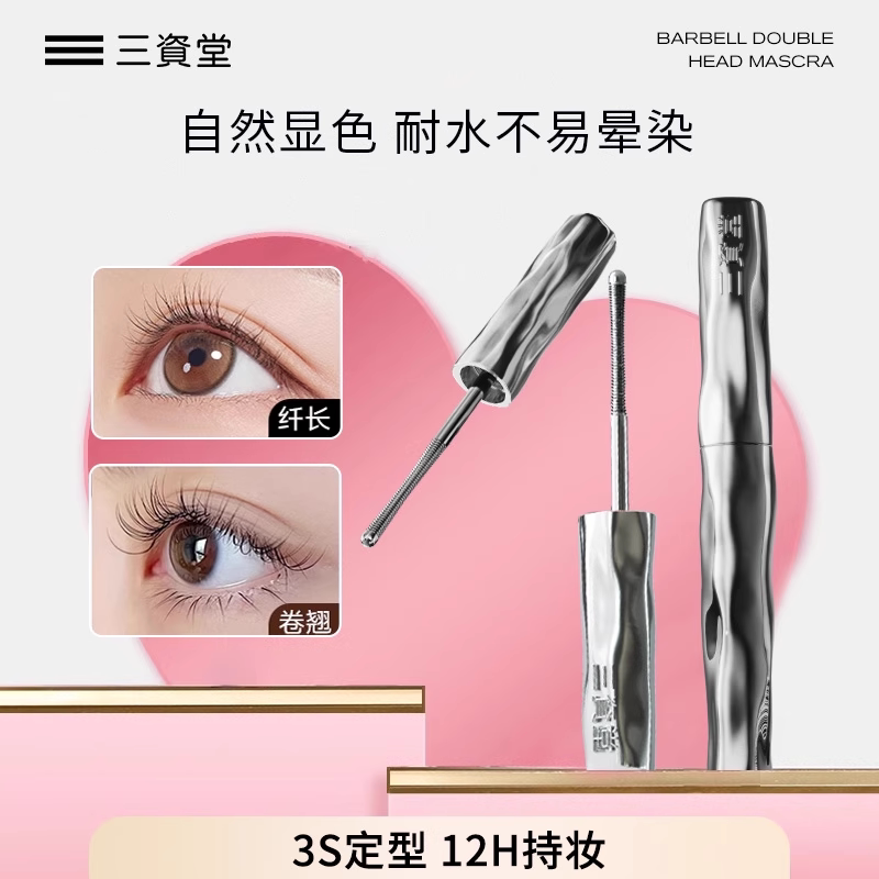 【何泓姗同款】三资堂杠铃双头睫毛膏防水纤长卷翘不晕染浓密官方