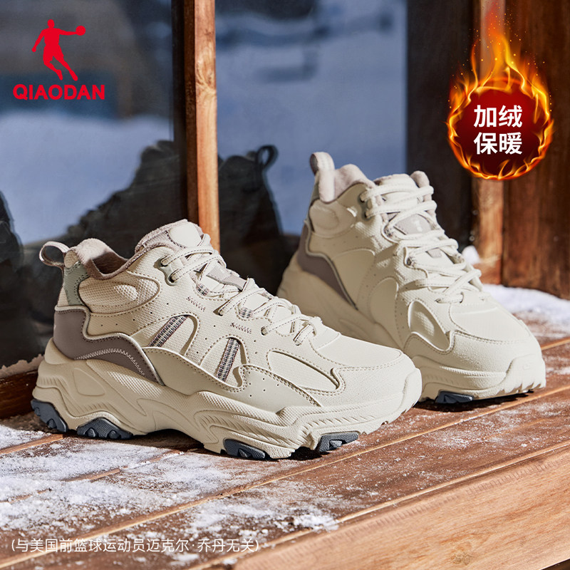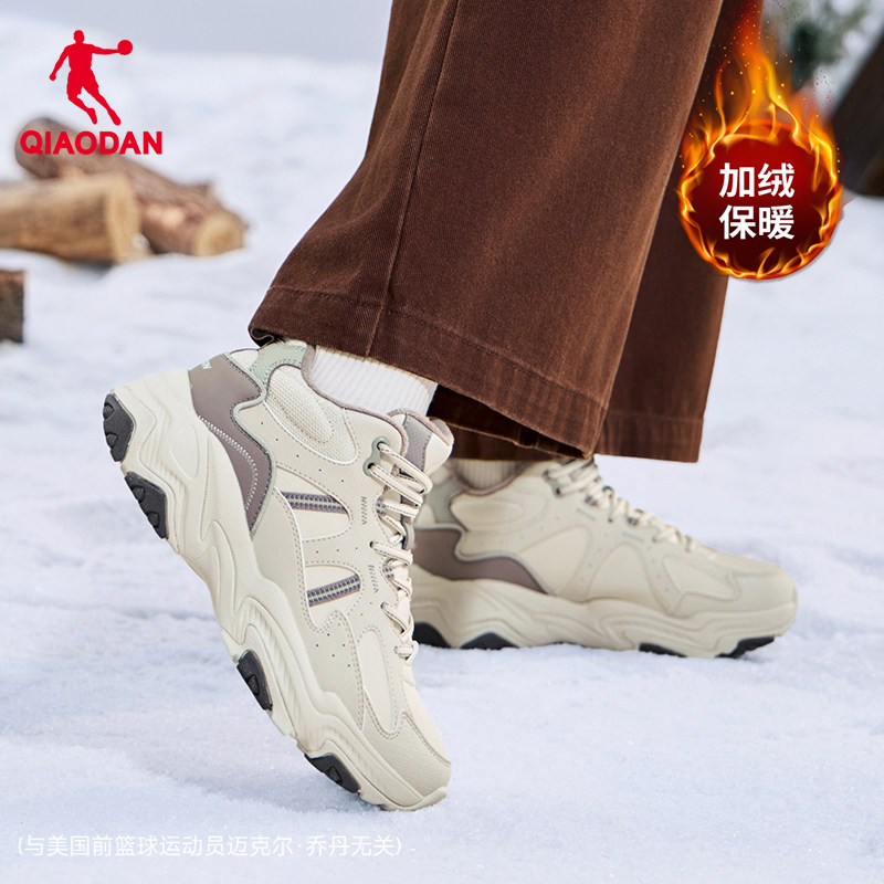 乔丹小千禧皮面防水休闲鞋女2025新款加绒保暖老爹鞋学生运动鞋子