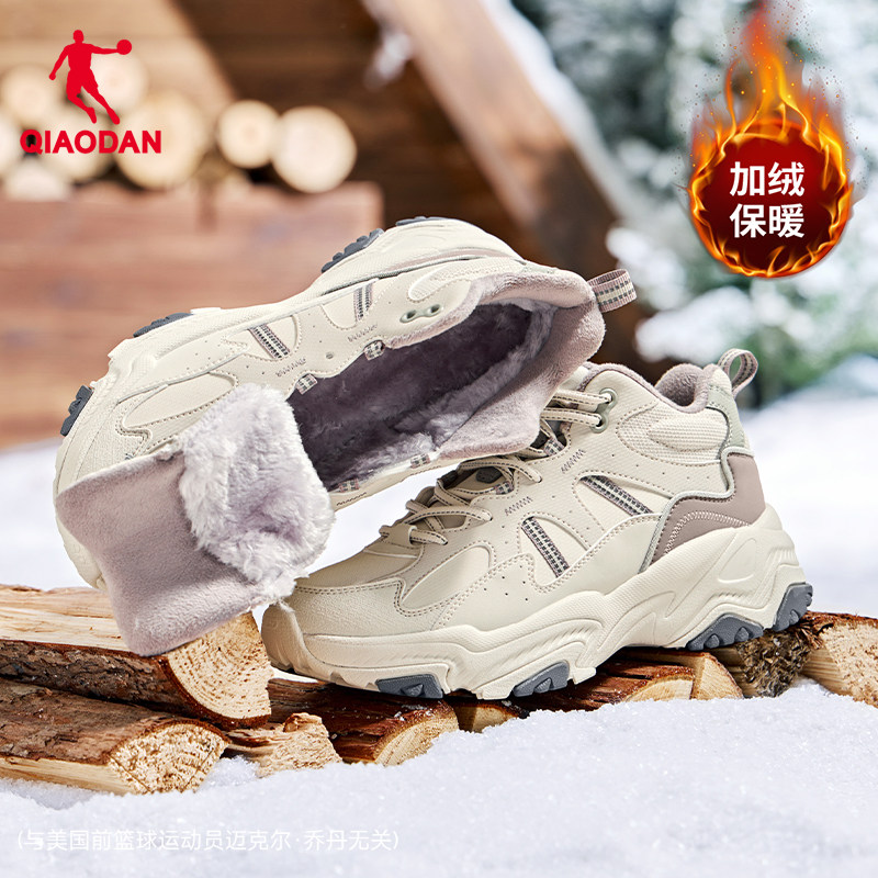 乔丹高帮加绒保暖大棉鞋女2025冬季新款皮面防水休闲鞋户外运动鞋