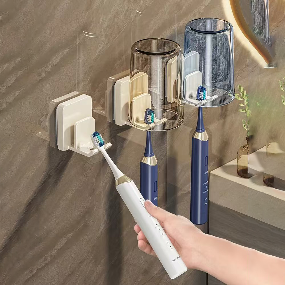 电动牙刷杯架卫生间免打孔漱口杯架收纳底座壁挂式置物架杯子牙膏