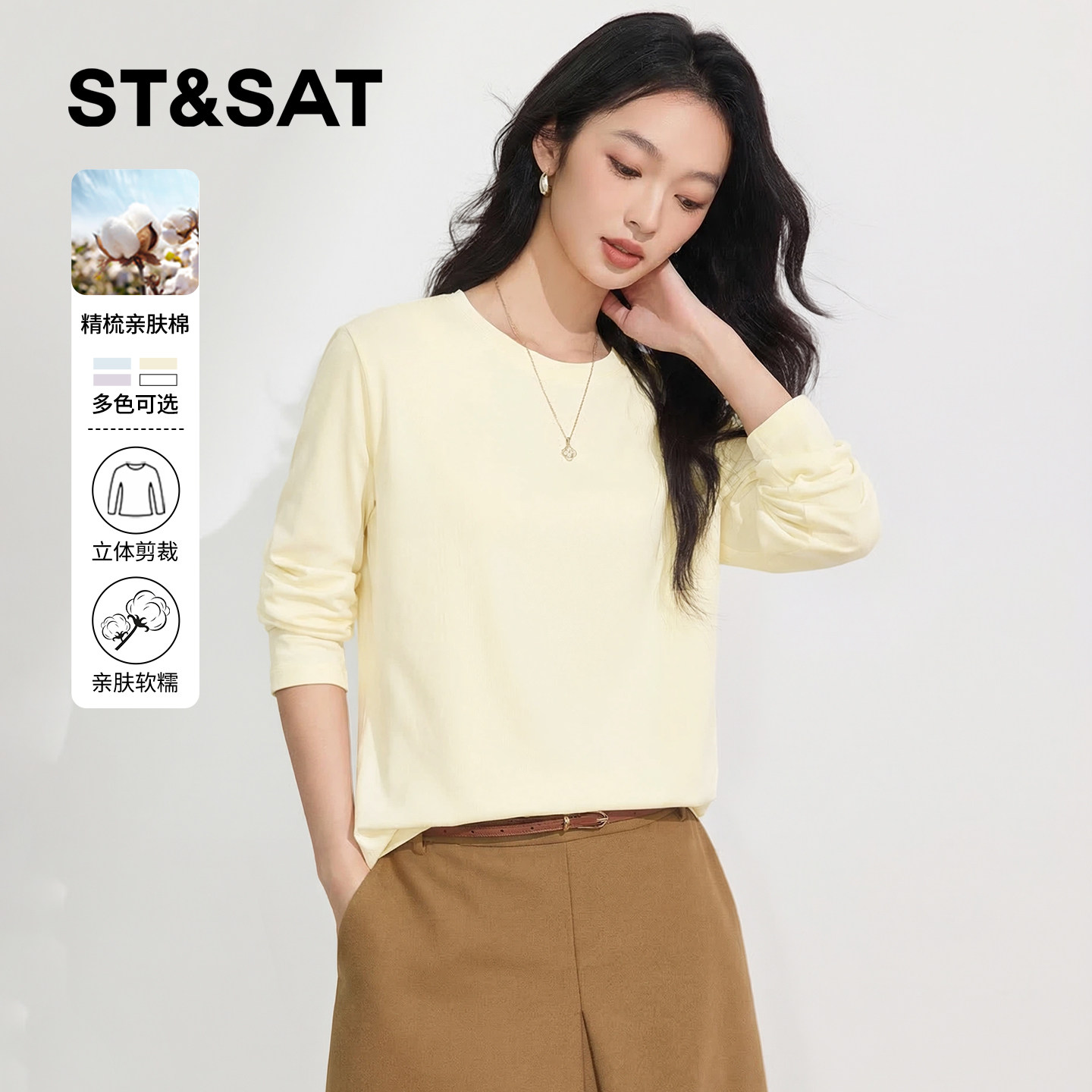 三福长袖上衣女2025新款秋冬季圆领内搭打底衫修身白色t恤女装
