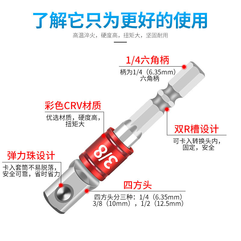 手电钻接头六角柄转四方连接杆套筒加长电动扳手套筒头连接转换杆