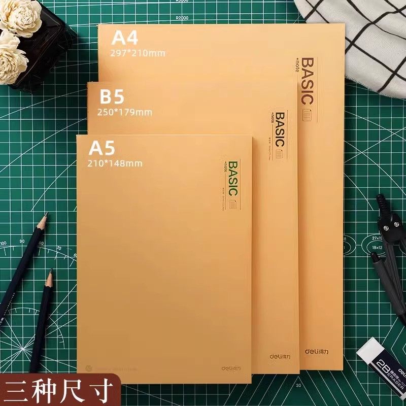 得力牛皮纸笔记本子大学生用考研高中生a4读书记事本日记本软面抄初中生专用16k牛皮本横线本厚练习簿作业本