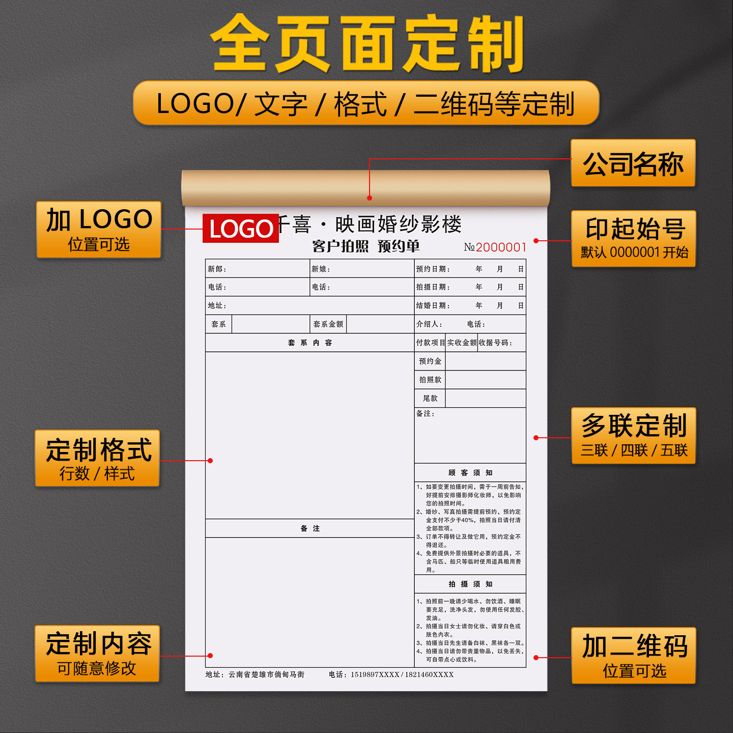 【影楼拍摄单】婚纱摄影定流程单婚礼策划服务合同跟妆订单
