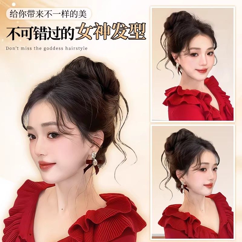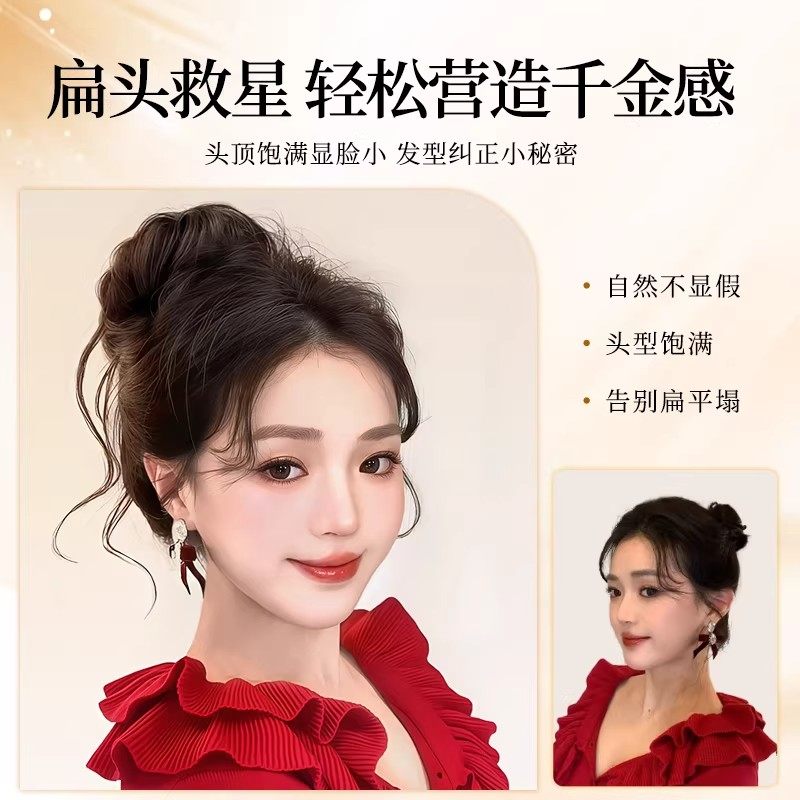 丸子头假发女仿真发千金花苞龙须高颅顶盘发髻神器发圈发型