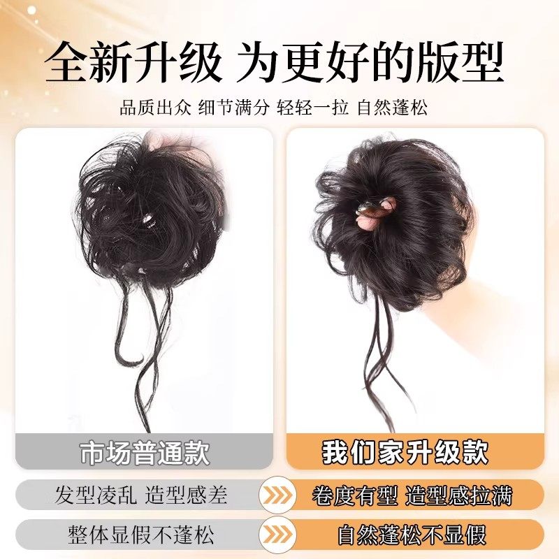 低扎丸子头假发鸡毛头抓夹盘发发包慵懒感造型头饰自然蓬松后脑勺
