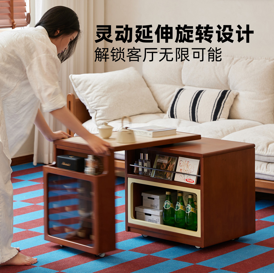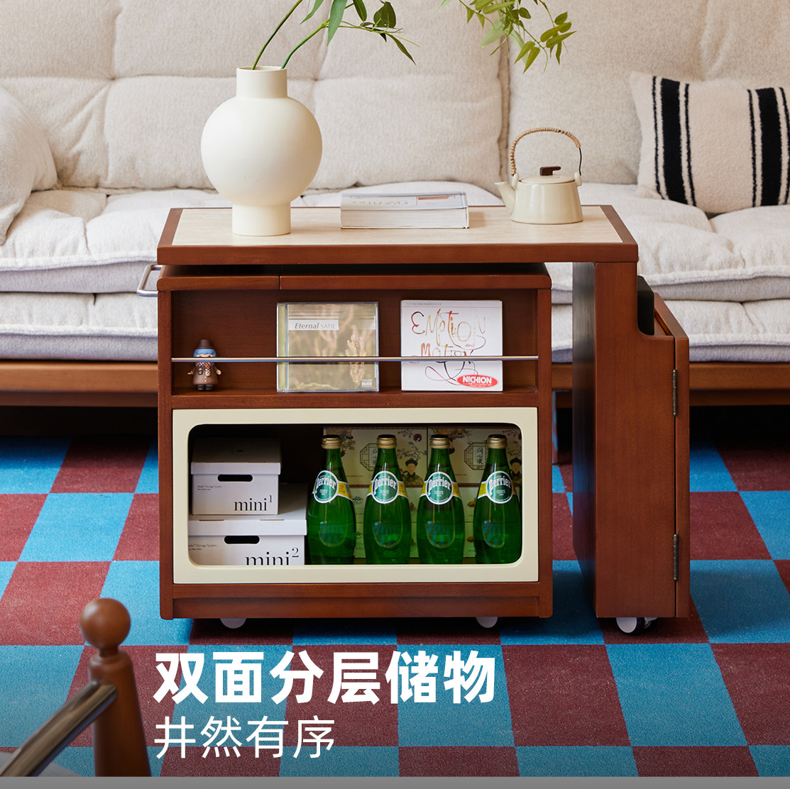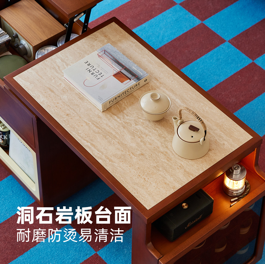 editionhom奥拉升降旋转实木岩板茶几家用客厅小户型移动沙发边几