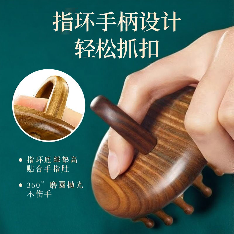 指环按摩檀木梳子天然圆盘头皮头部经络疏通毛囊养发神器头疗工具