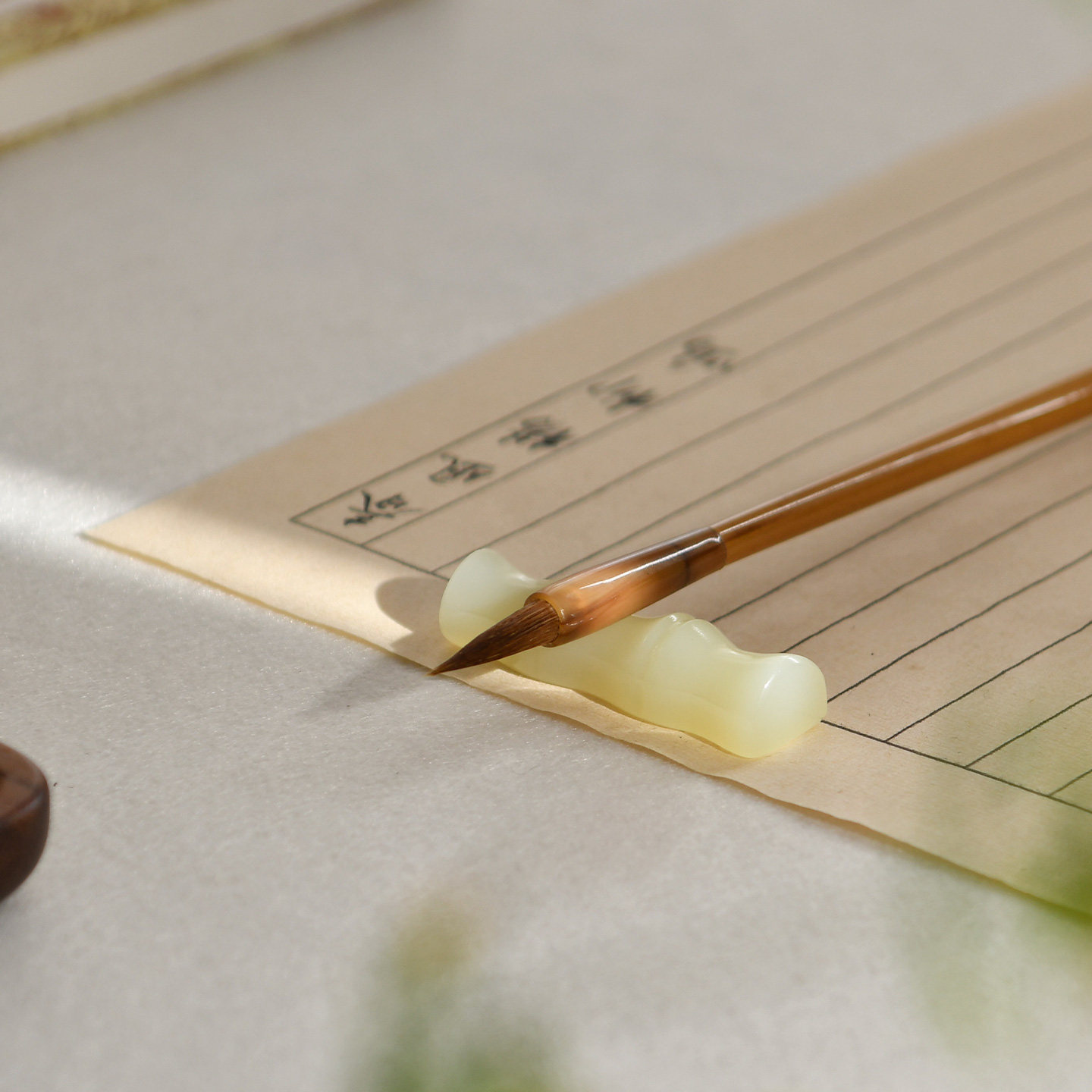赵北毛笔笔搁书法国画专用笔架天然原石岫玉手工雕刻毛笔笔托文房四宝多功能创意摆件竹节玉石镇尺书法笔搁