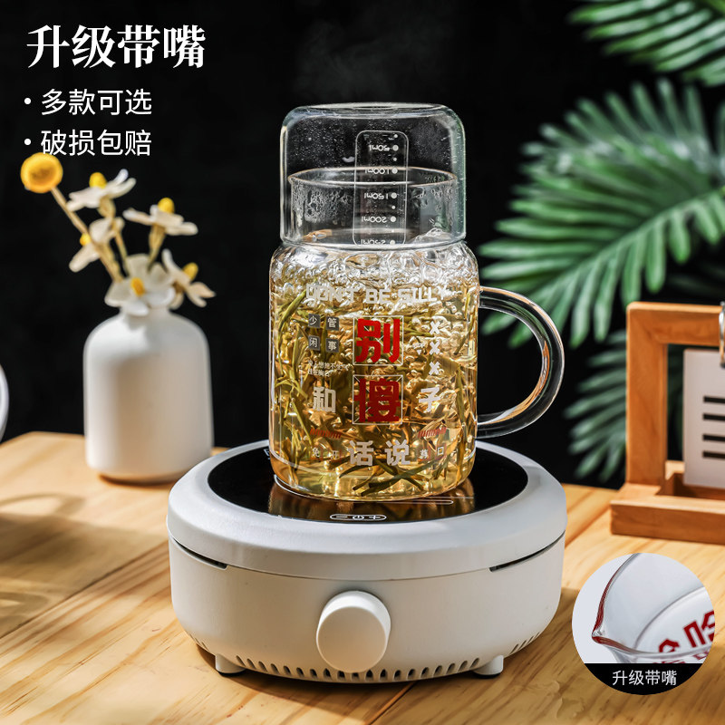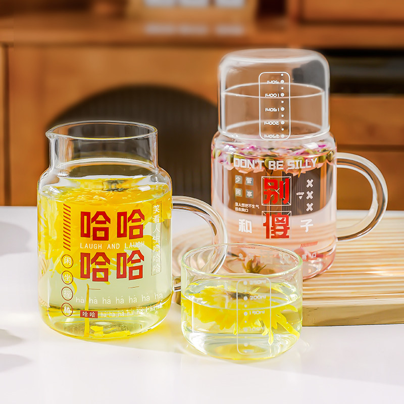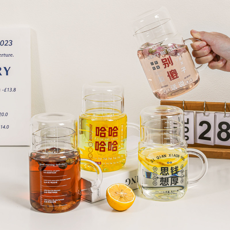 大容量带盖杯子家用喝水杯女耐高温玻璃带把刻度杯办公室男泡茶杯