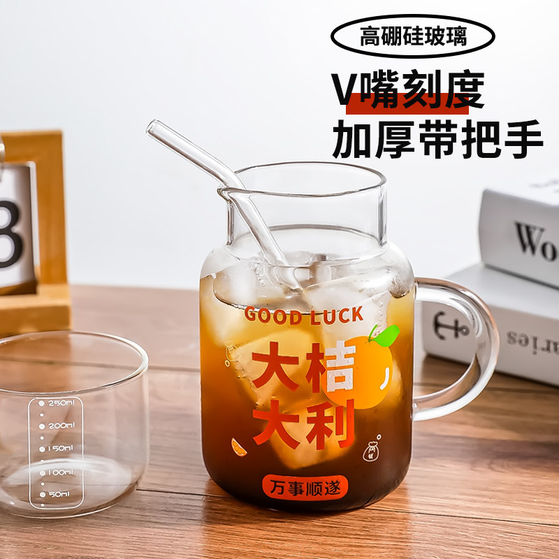ins玻璃杯带把手马克杯高颜值喝水杯子家用早餐牛奶杯冷萃咖啡杯