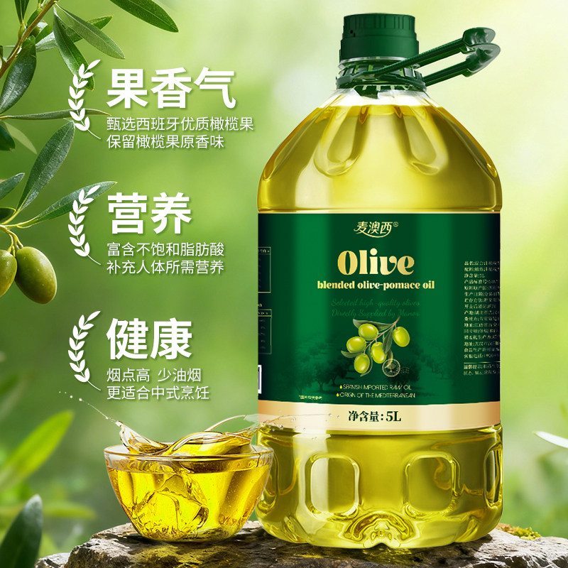 欧丽薇兰橄榄油5L/桶 冷榨家用热炒中式烹饪食用油西班牙原油进口