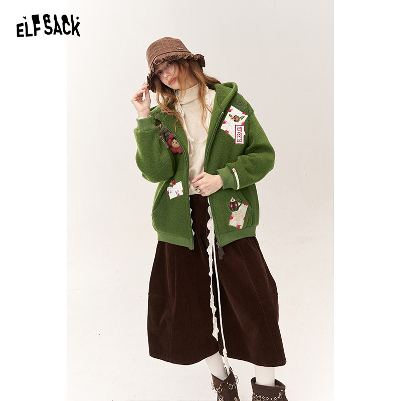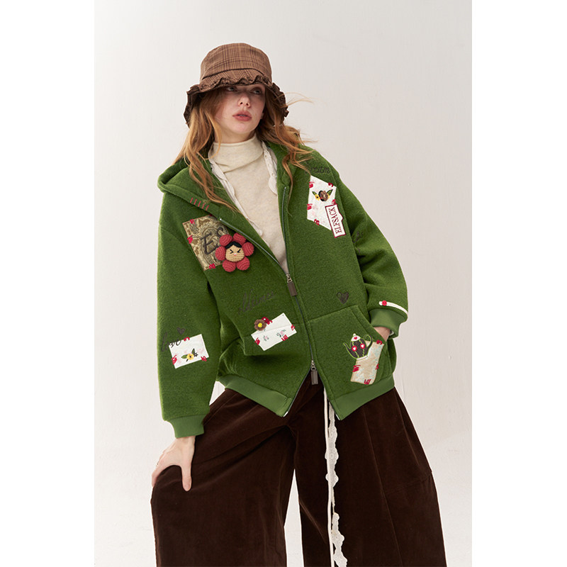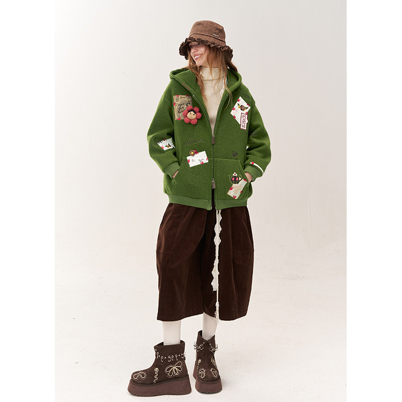 妖精的口袋趣味贴布短款毛呢外套女2025冬新款小个子设计感厚外套