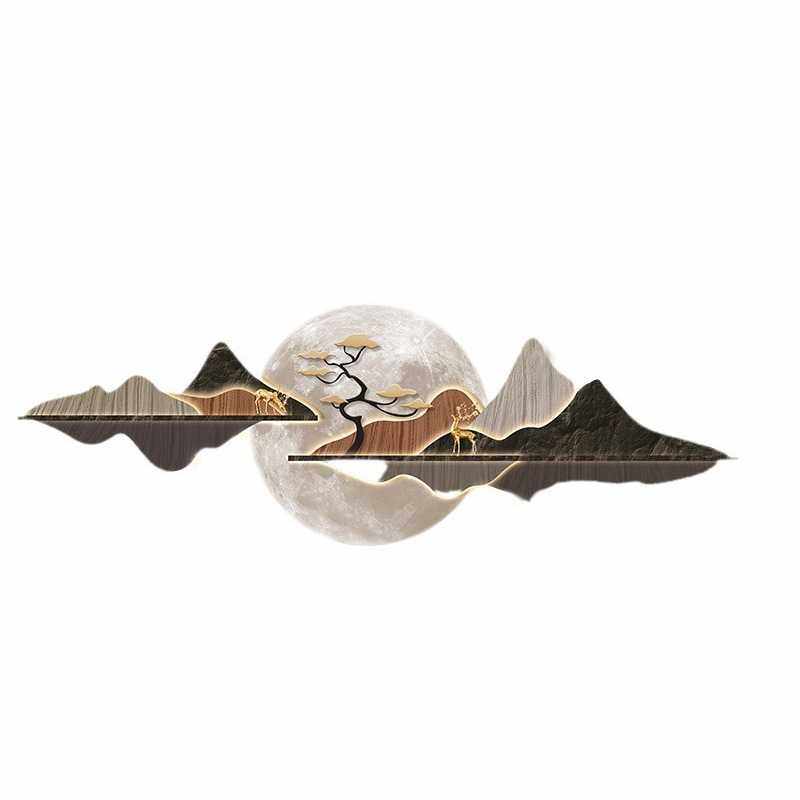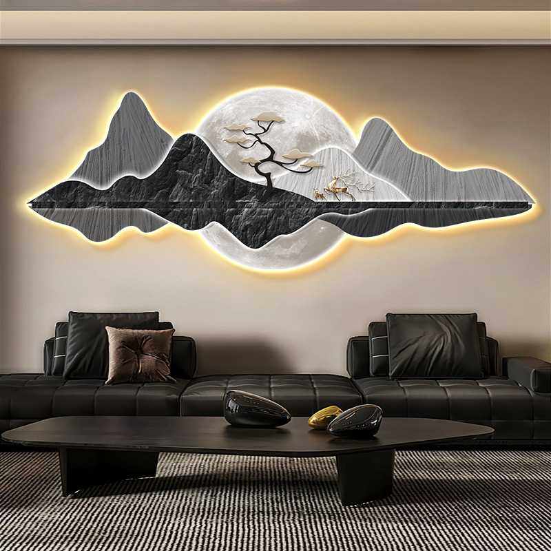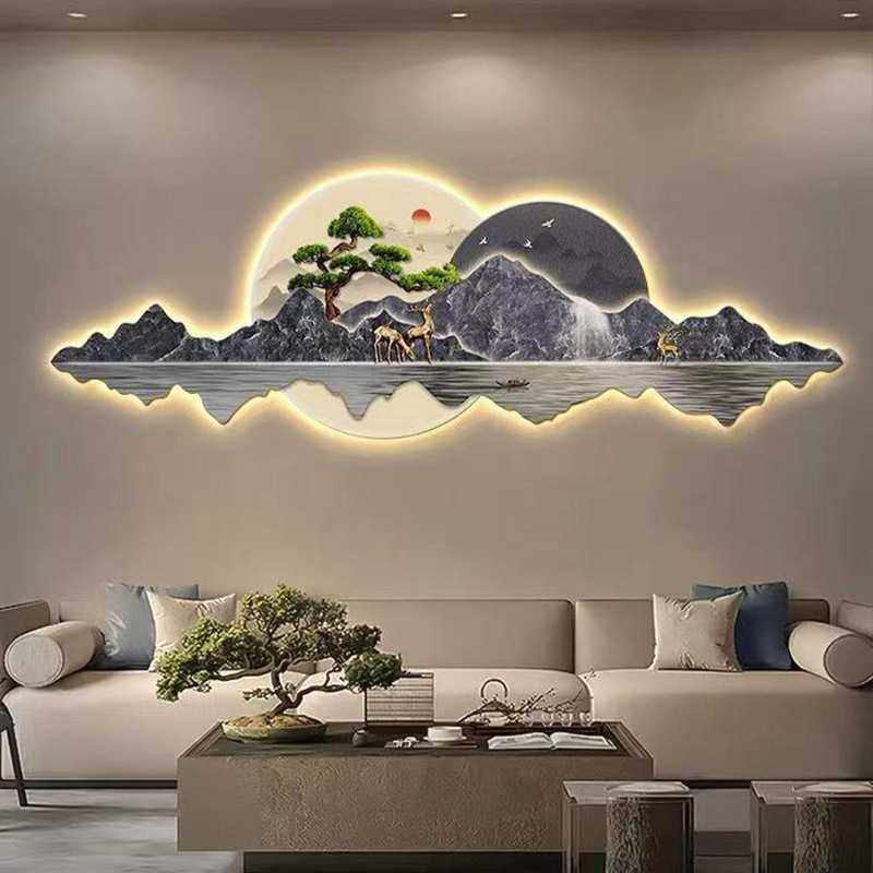 现代轻奢客厅沙发背景大气山水壁画创意LED灯光装饰画LED灯饰