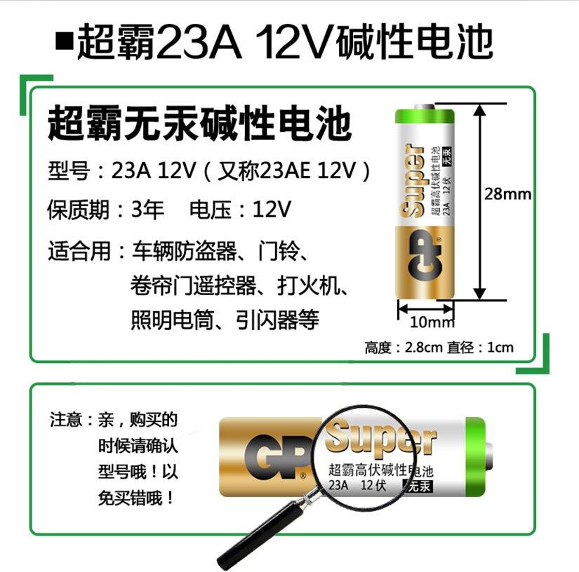超霸23A12V伏门铃12V23A电动A23S卷帘门23AE灯遥控器433电池L1028