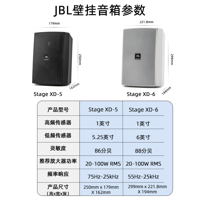 JBL STAGE XD-5/XD-6室内外壁挂音箱会议室背景音乐系统