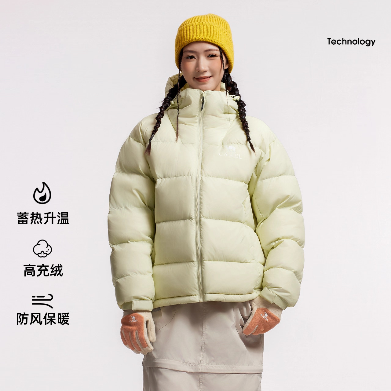 骆驼黑钻5奶茶棕羽绒服男女款冬季新款加厚保暖连帽面包服外套