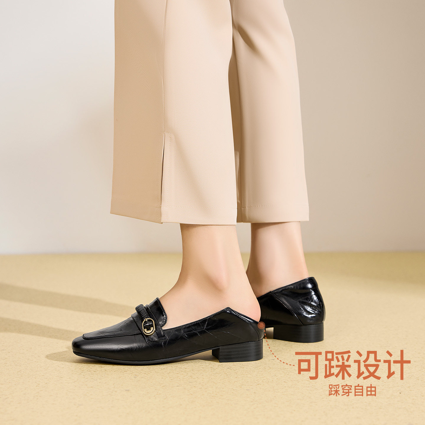 真皮一脚蹬乐福鞋女鞋子2025春秋新款透气小皮鞋黑色平底豆豆单鞋